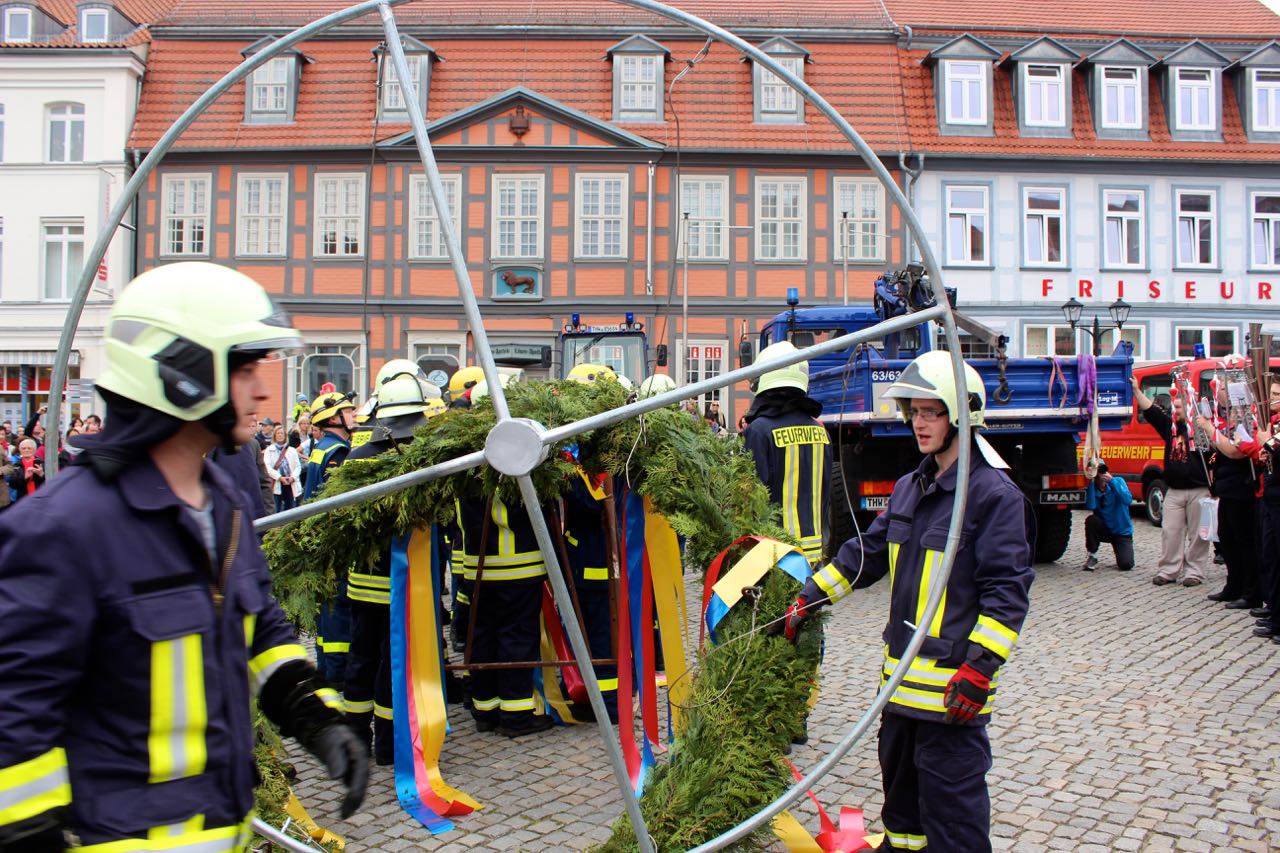 Nach der Automesse ist aber noch nicht Schluss. Dann geht’s gemeinsam mit der Warener Feuerwehr hoch zum Neuen Markt. Die Kameraden wollen dort – auch das hat schon Tradition – den Maibaum aufstellen.