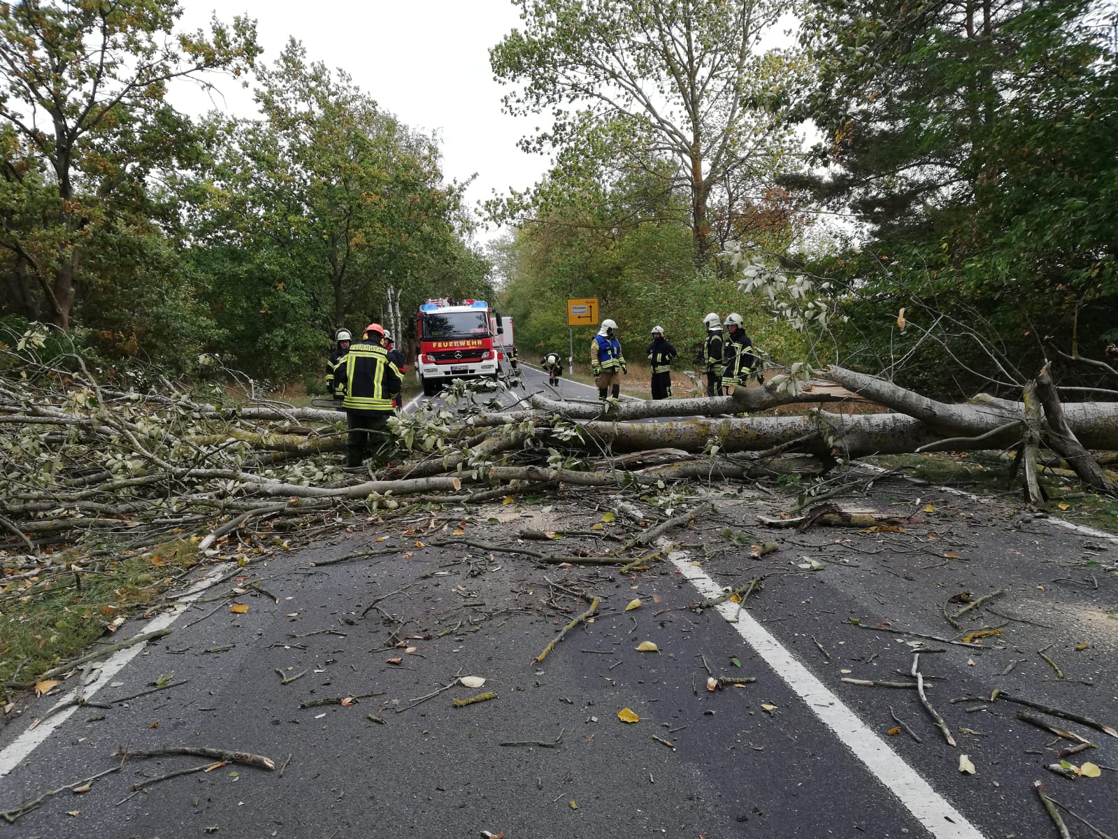 Da ging wirklich nichts mehr: Zwischen Schwenzin und Jabel lag dieser Baum quer auf der Fahrbahn. Inzwischen haben Waren Feuerwehrleute dafür gesorgt, dass Autofahrer wieder freie Fahrt haben.