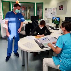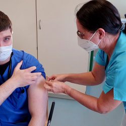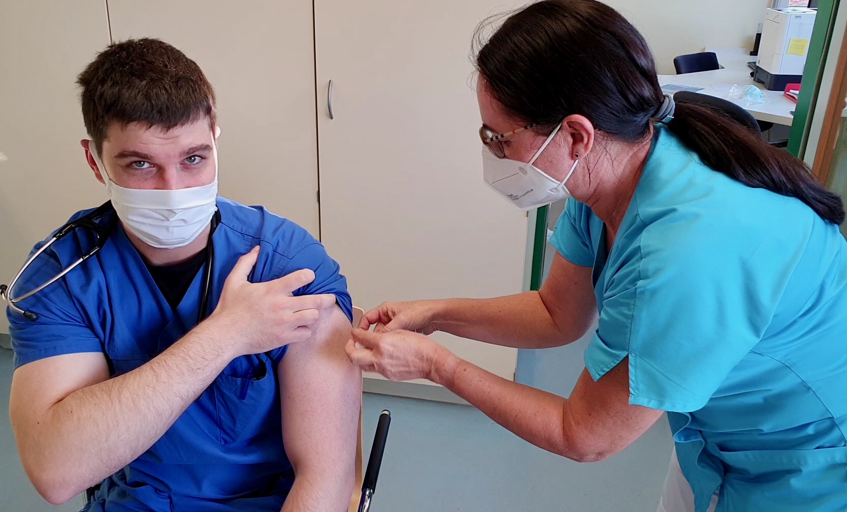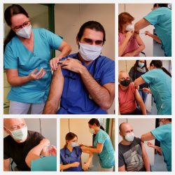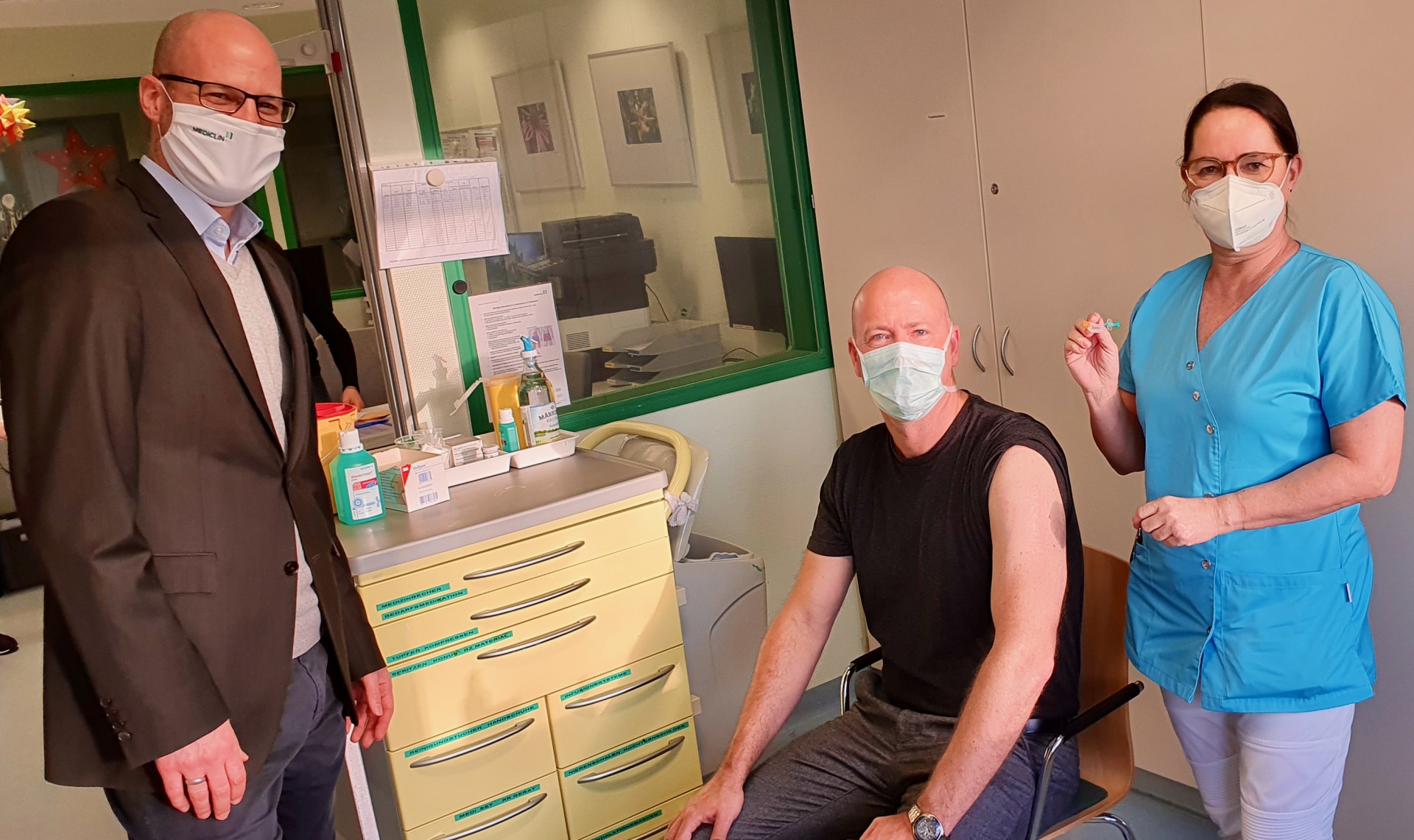 Die Impf-Aktion – selbstverständlich auf freiwilliger Basis – startete mit den Kollegen, die direkt in der Betreuung der COVID-Patienten arbeiten oder die CO-VID-Testungen durchführen. Des Weiteren wurden im ersten Durchlauf die Mitarbeiter in den besonders sensiblen Bereichen, wie der Geburtshilfe, der Pädiatrie, der Onkologie und im OP geimpft. Nach und nach soll aber jeder Mitarbeiter, der gerne geimpft werden möchte, auch direkt vor Ort die Chance dazu bekommen.