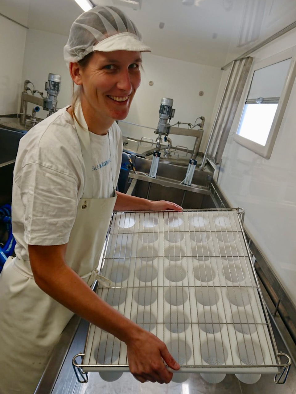 „Erst muss die Milch erwärmt werden, dann kommen Milchsäurebakterien hinein, die dafür sorgen, dass der Milchzucker abgebaut wird“, erklärte Anja Hansen. Dann heißt es „Rühren und Wärmen“. Bis zu 30 Grad warm wird es im Lkw, ein Prototyp. Nach der eigentlichen Käseproduktion soll der Schnitt- oder Weichkäse dann in Reiferäumen reifen.