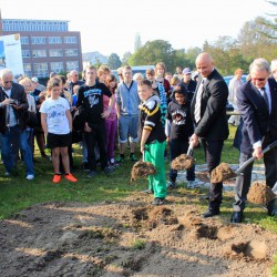Bis dahin müssen nicht nur viele Planer und Handwerker ordentlich ‚reinhauen. Vielmehr gilt es auch, die Jugendlichen der Stadt von IHREM Haus zu überzeugen. Denn der erste Spatenstich war heute Vormittag zwar gut besucht, allerdings dominierten eher graue Haare das Bild.