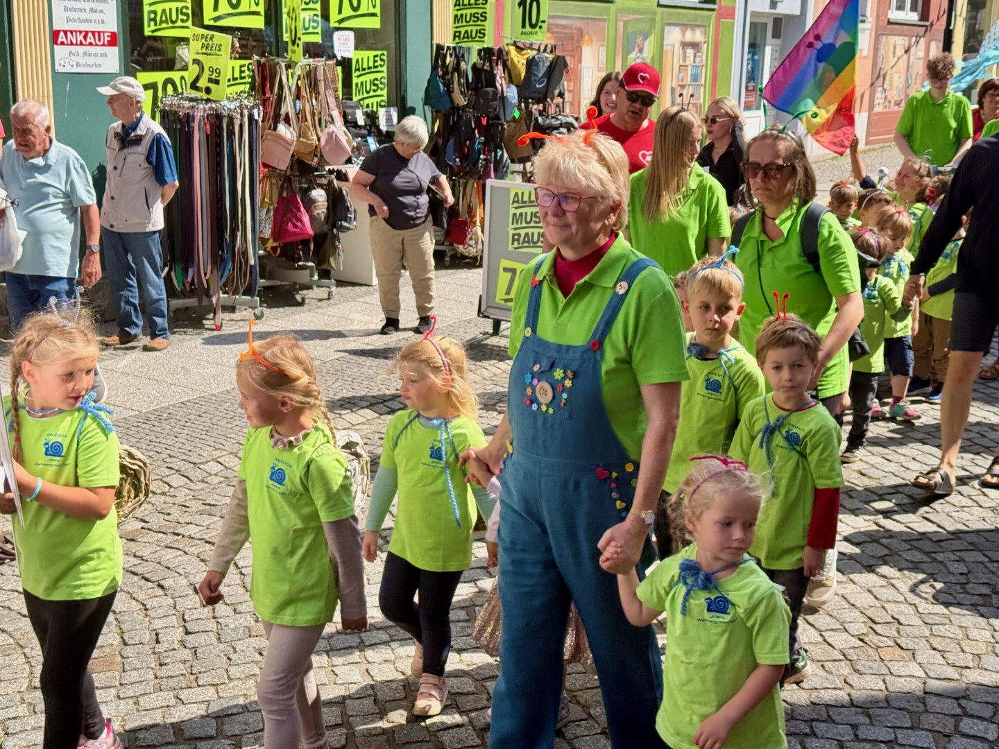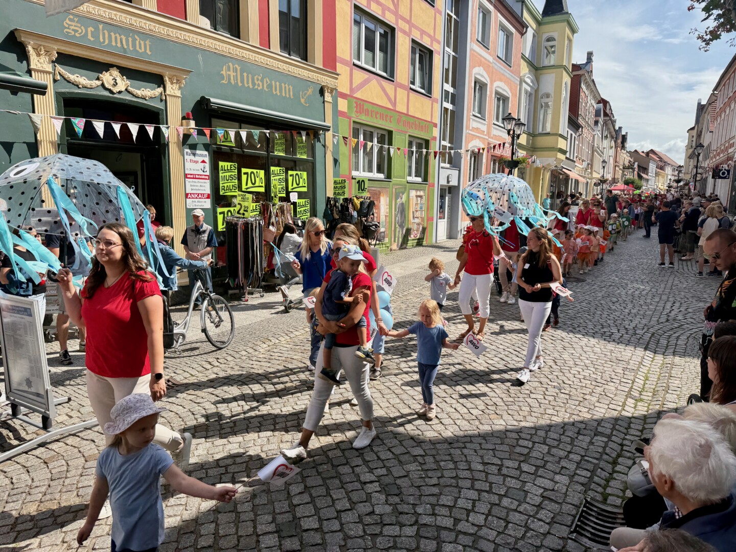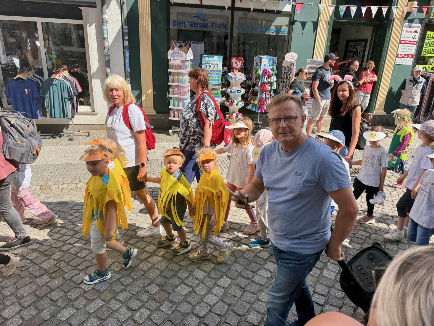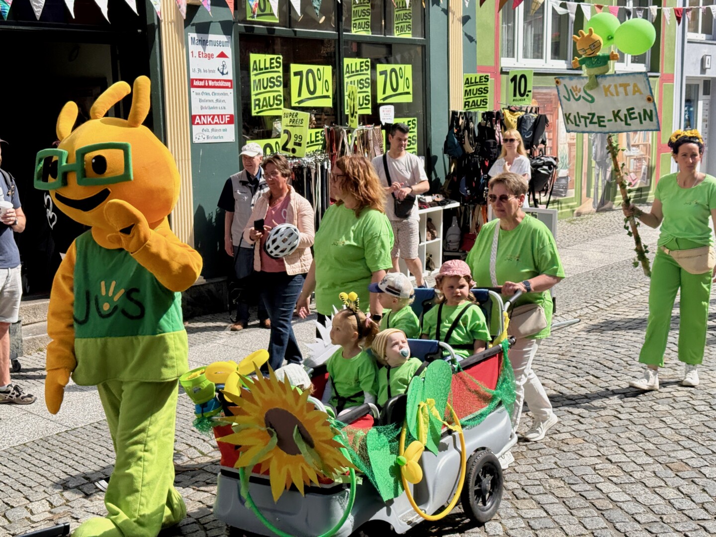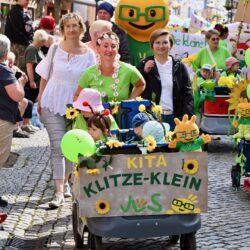 Dieser Umzug war toll. Ich erinnere mich an die vielen Umzüge der Kindergärten und Schulen zu der Zeit vor 1990. Unsere Tochter besuchte damals den Kindergarten am „Pionierplatz“. Die damalige Leiterin, Frau Westphal, hatte jedes Jahr die tollsten Ideen für ihre Einrichtung. Schön wenn daran wieder angeknüpft wird. Lob dem Innenstadtverein.