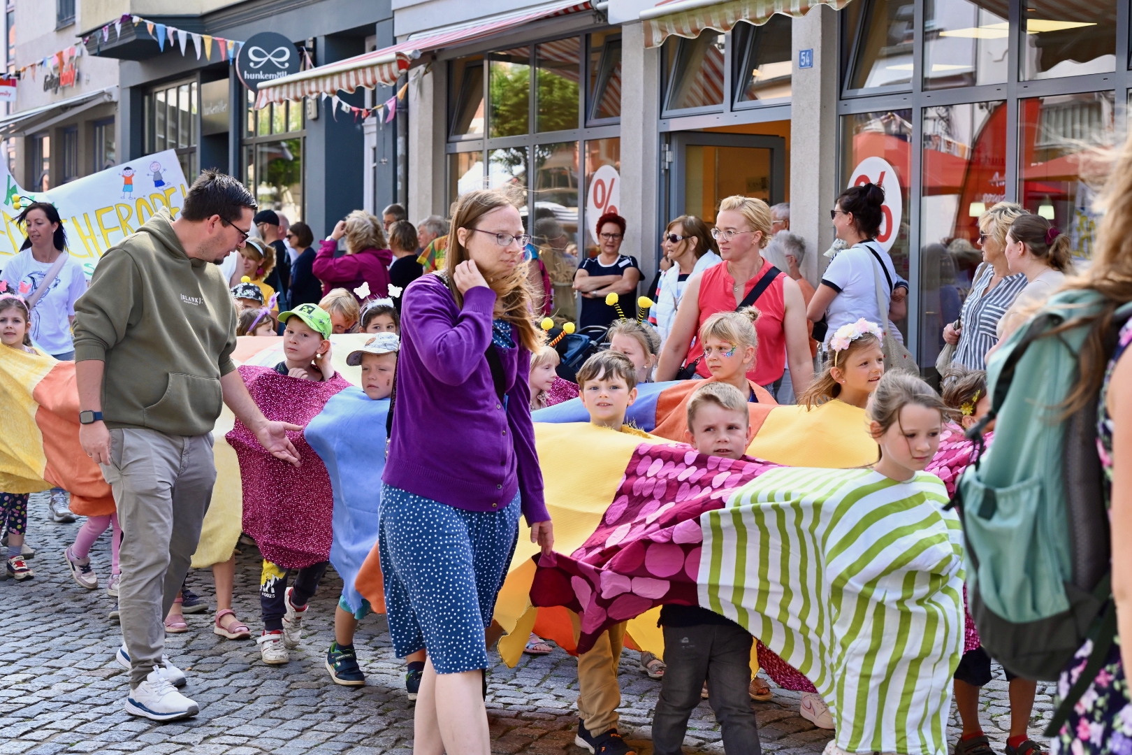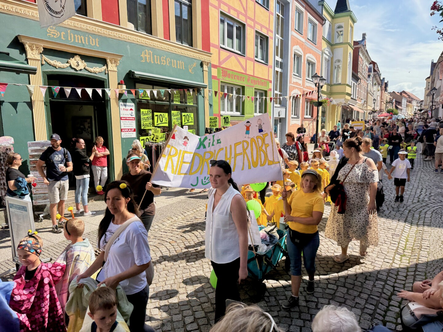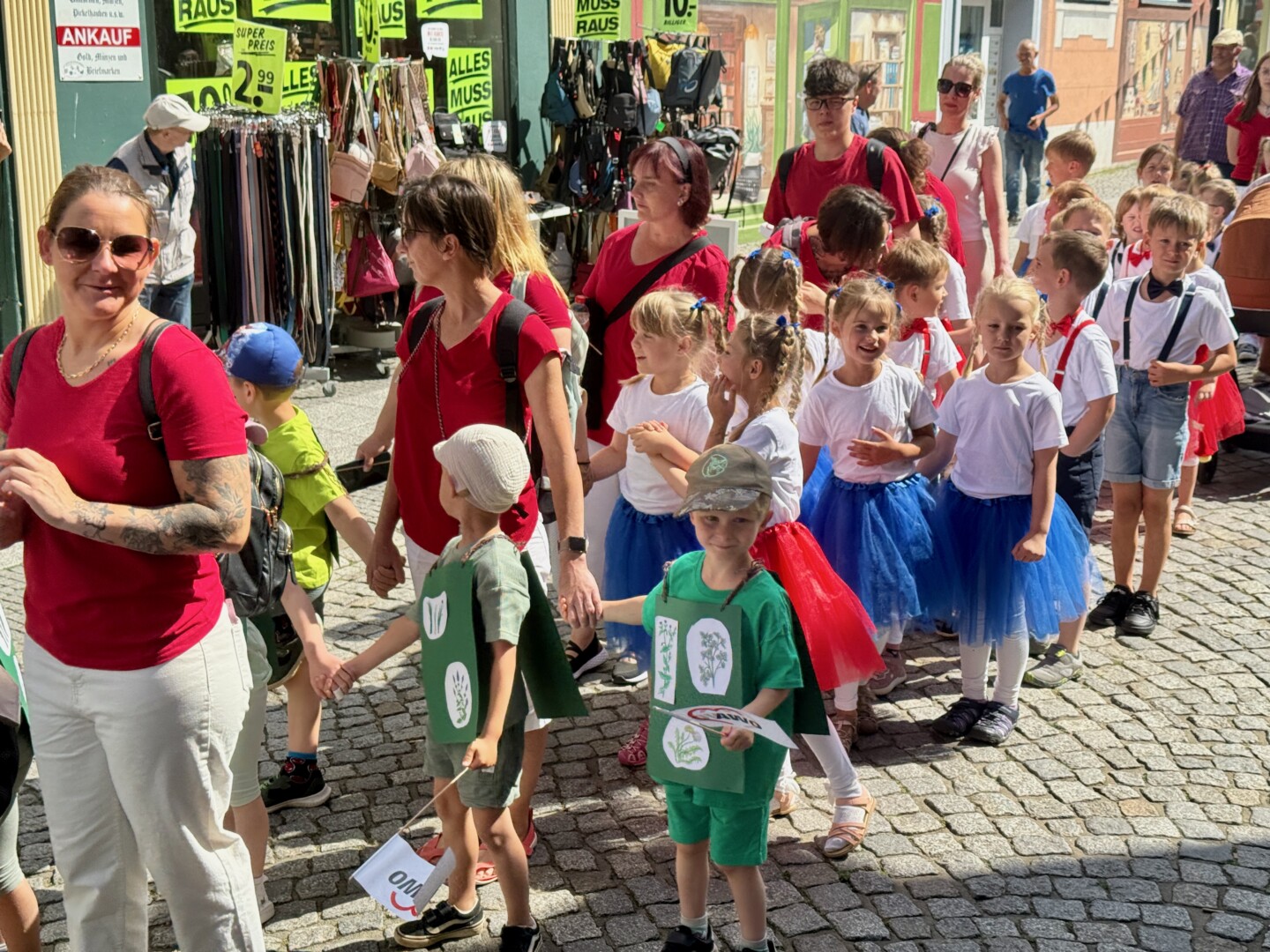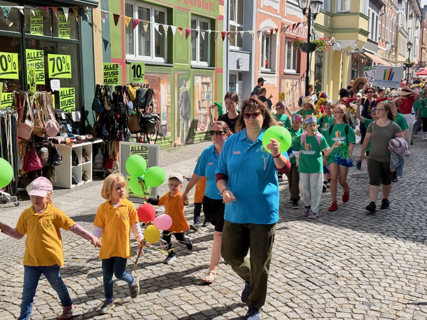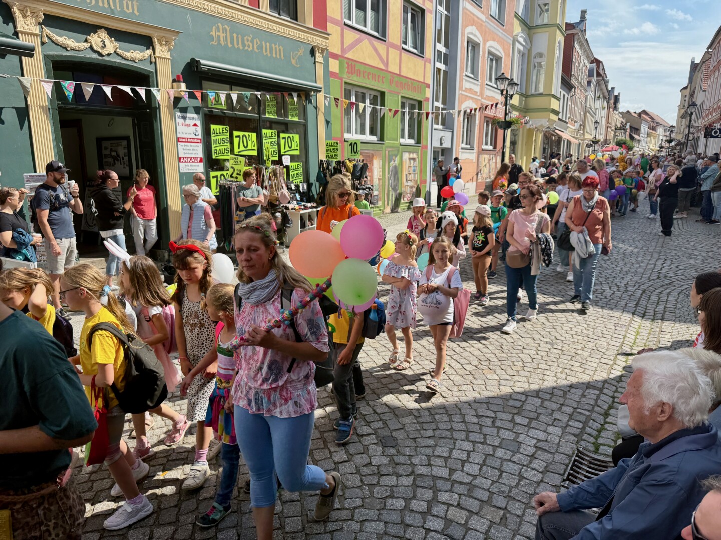 Dieser Umzug war toll. Ich erinnere mich an die vielen Umzüge der Kindergärten und Schulen zu der Zeit vor 1990. Unsere Tochter besuchte damals den Kindergarten am „Pionierplatz“. Die damalige Leiterin, Frau Westphal, hatte jedes Jahr die tollsten Ideen für ihre Einrichtung. Schön wenn daran wieder angeknüpft wird. Lob dem Innenstadtverein.