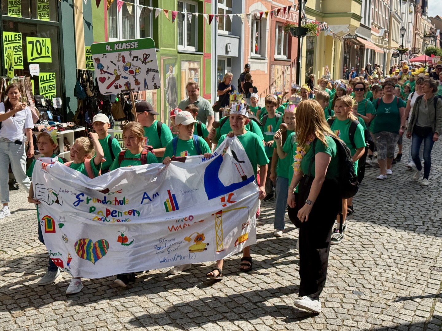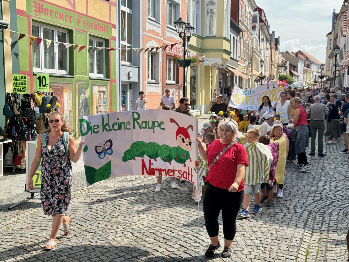 Wir sind der Meinung: Das war spitze! Viel mehr muss man zum heutigen Kinderumzug zur Eröffnung des 70. Müritzfestes gar nicht schreiben. Erstmals seit mehr als 20 Jahren gab es diesen Umzug wieder, über 1000 Mädchen und Jungen zogen durch die Stadt. Die Kitas und Schulen haben sich unwahrscheinlich viel Mühe gegeben, die Stimmung – bombastisch. Das hat selbst den sonst eher zurückhaltenden Bürgermeister Norbert Möller richtig „ausflippen“ lassen. Er sprühte vor Begeisterung. Hier und da hat vielleicht ein bisschen Musik gefehlt, aber, hey, Leute, es war der erste Kinderumzug, organisiert vom Warener Innenstadtverein. Diese Premiere war mehr als gelungen.