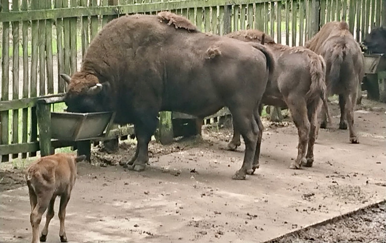 Darf ich auch fressen, oder sollte ich lieber Abstand halten?, – diese Frage stellt sich derzeit oft mehrfach der jüngste „Bewohner“ von Damerow. In einem der beiden Schaugehege des Wisentreservates hat das erste kleine Kalb des Jahres 2020 vor etwa zehn Tagen das Licht der Welt erblickt und es bei vielen Gästen bereits zum Besucherliebling geschafft. Entsprechend groß ist das Erstaunen der vielen Wisent Freunde, wenn sie sehen, wie die größeren Tiere das Kälbchen attackieren, um es bei der Schaufuetterung auf Distanz zu halten.