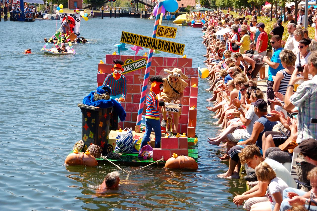 Wie Bilder der Vorjahre belegen, kommen die Teilnehmer aus nah und fern immer mit besonders fantasievollen Wassergefährten an die Elde, die den Urlauberort zusammen mit dem Müritzwasser durchfließt.