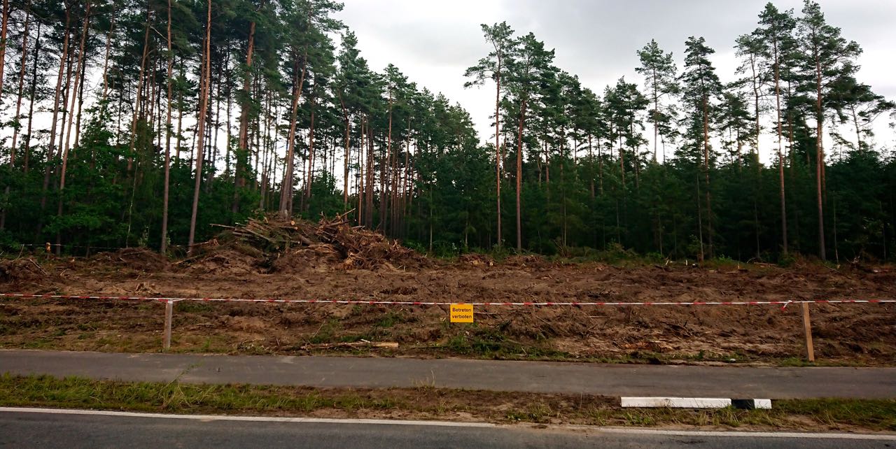 Der Flugzeugabsturz vor zwei Wochen hat bei Nossentin eine unübersehbare Narbe in den Wald am Blücher-Denkmal geschlagen. Rechts von der Straße bei Nossentin in Fahrtrichtung Jabel sind auf etwa 100 mal 60 Metern fast alle Bäume gerodet. Ein leichter Gestank von Flugzeugbenzin liegt in der Luft. Zum Teil verkohlte Stämme liegen mit Wurzeln und großen Ästen zu Haufen aufgeschichtet.