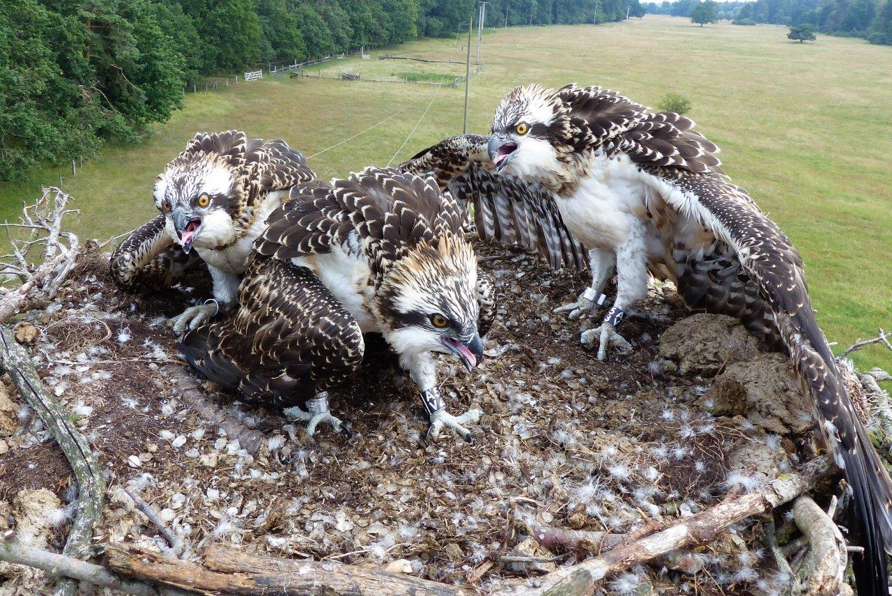 Foto oben: Bei Müritzhof zogen die Fischalder drei Junge groß. Das Bild entstand während der Beringung der Tiere durch fachkundige Helfer. Bild: Andreas Baß