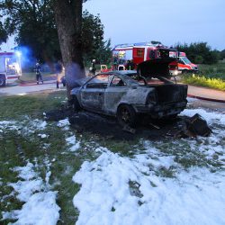 Wie sich wenig später herausstellte, war das Fahrzeug weder zugelassen noch pflichtversichert. Der Opel brannte vollständig aus. Die Freiwillige Feuerwehr Rechlin war vor Ort und löschte den Opel mittels Schaum ab.