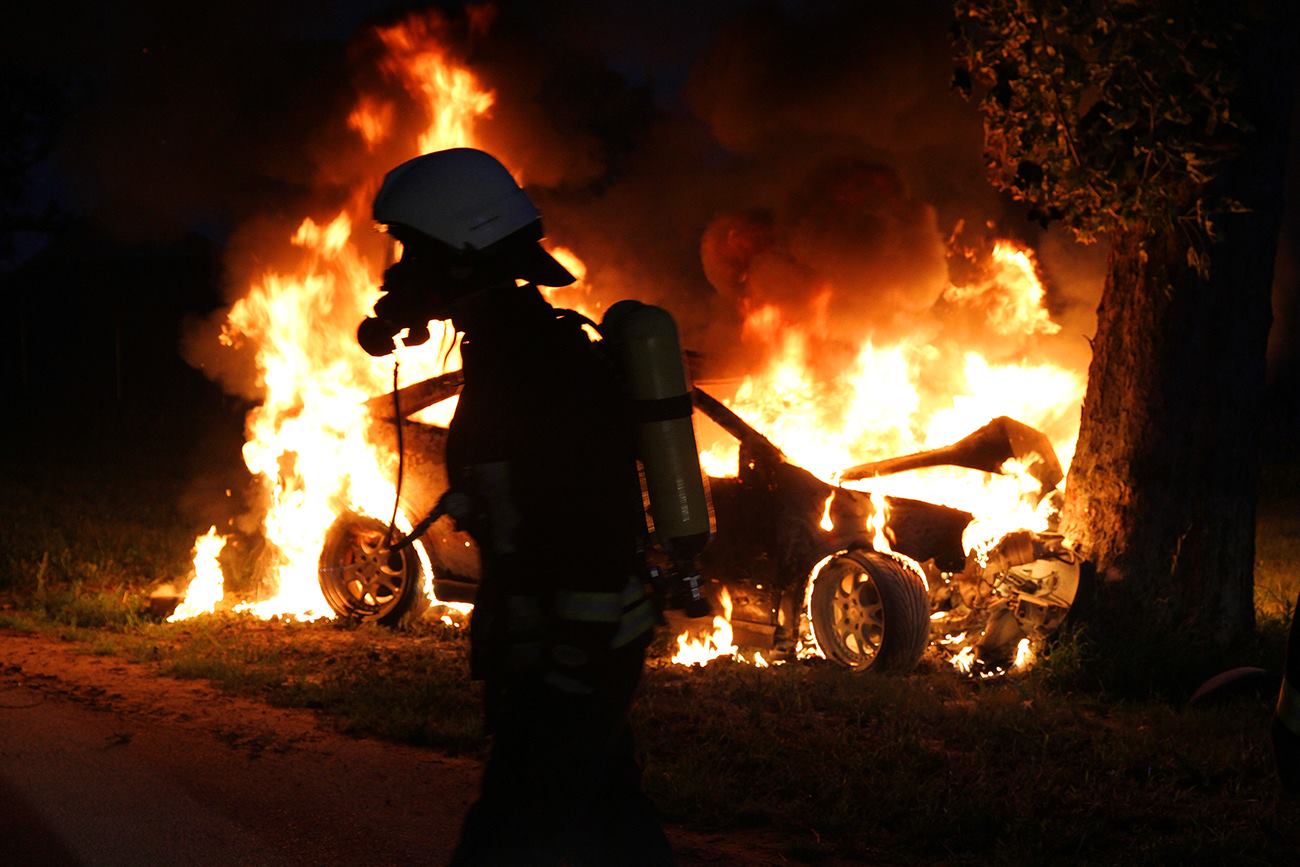 Fahrer kann sich aus brennendem Wagen retten