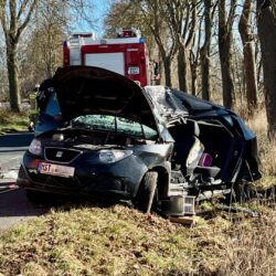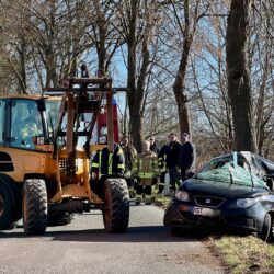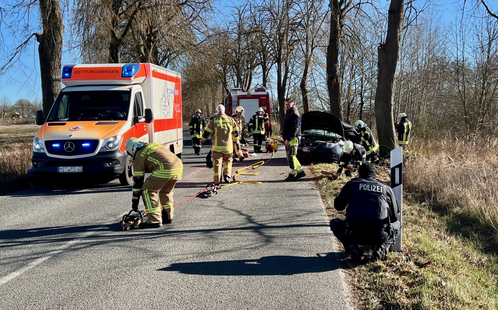 Auf der Kreisstraße bei Rechlin ist heute Nachmittag eine 37 Jahre alte Frau mit ihrem Wagen aus bislang unbekannter Ursache nach rechts von der Straße abgekommen und frontal gegen einen Baum gekracht. Dabei wurde sie im Fahrzeug eingeklemmt und musste durch die Kameraden der Freiwilligen Feuerwehr aus Lärz und Rechlin aus dem Seat befreit werden. Auf Grund der Schwere ihrer Verletzungen wurde die Frau mit einem Rettungshubschrauber ins Klinikum nach Plau am See geflogen. Der entstandene Sachschaden beläuft sich auf ca. 5.000 Euro. Während der Unfallaufnahme musste die Kreisstraße für etwa zwei Stunden voll gesperrt werden.