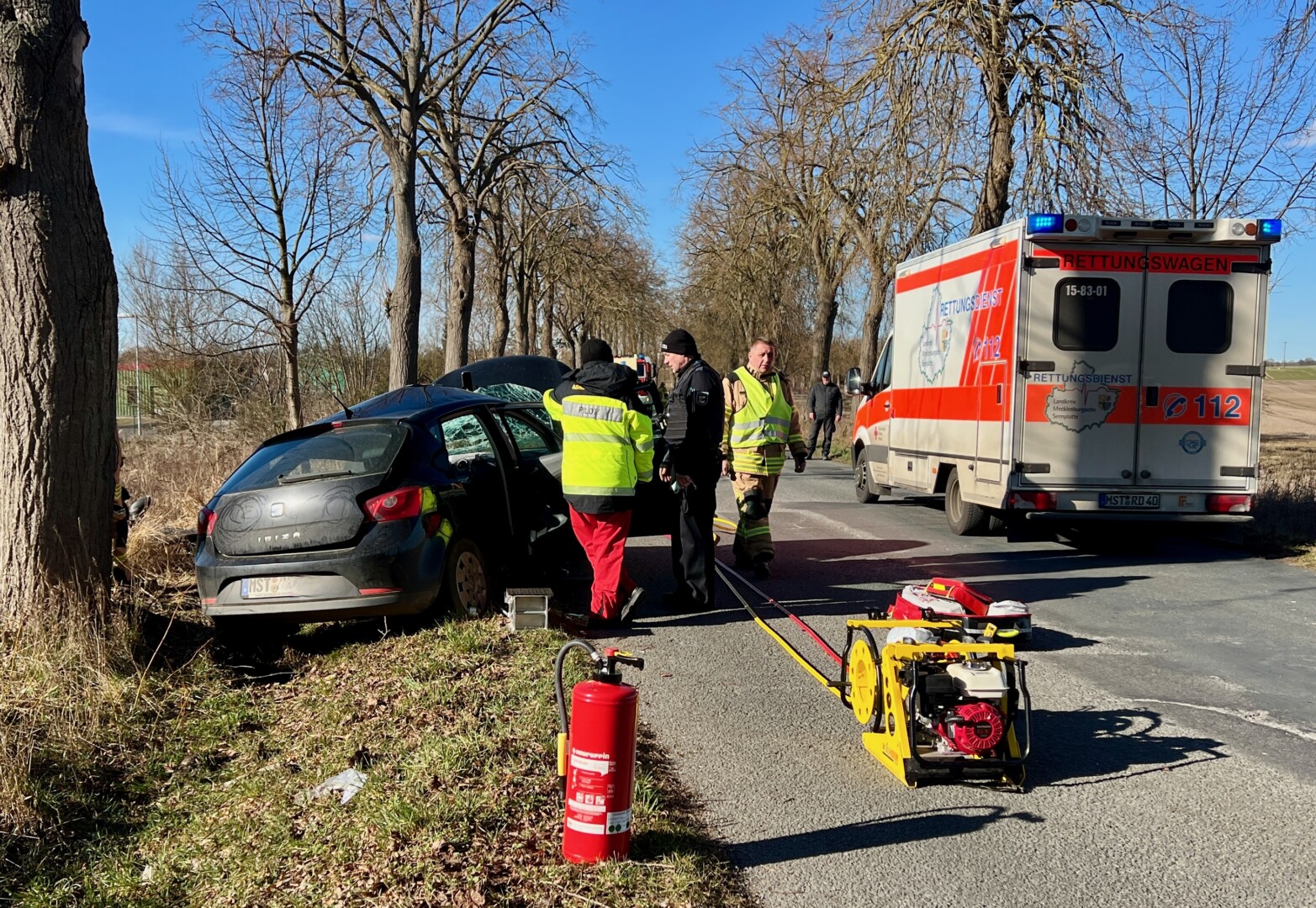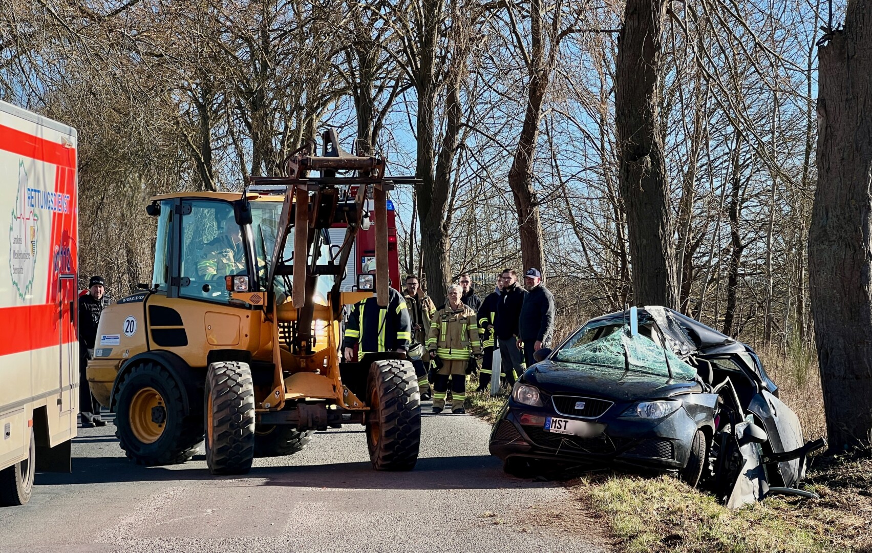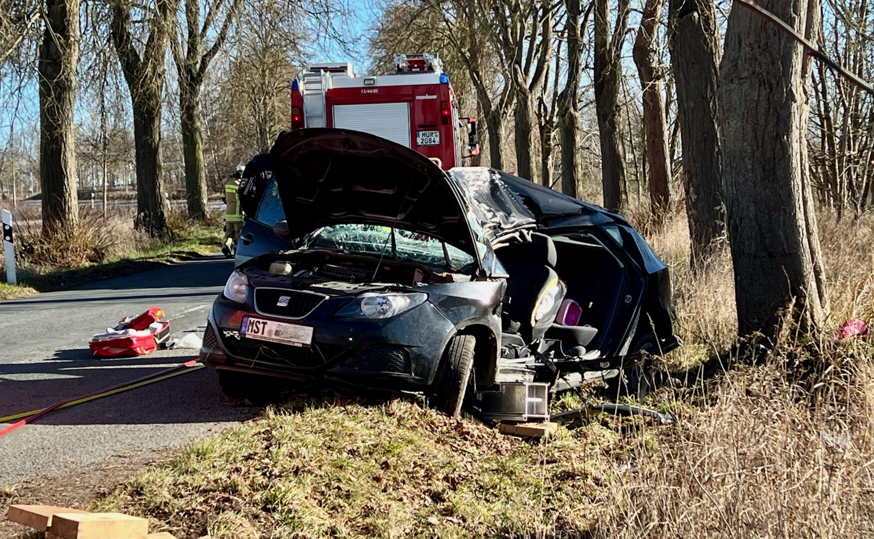Auf der Kreisstraße bei Rechlin ist heute Nachmittag eine 37 Jahre alte Frau mit ihrem Wagen aus bislang unbekannter Ursache nach rechts von der Straße abgekommen und frontal gegen einen Baum gekracht. Dabei wurde sie im Fahrzeug eingeklemmt und musste durch die Kameraden der Freiwilligen Feuerwehr aus Lärz und Rechlin aus dem Seat befreit werden. Auf Grund der Schwere ihrer Verletzungen wurde die Frau mit einem Rettungshubschrauber ins Klinikum nach Plau am See geflogen. Der entstandene Sachschaden beläuft sich auf ca. 5.000 Euro. Während der Unfallaufnahme musste die Kreisstraße für etwa zwei Stunden voll gesperrt werden.