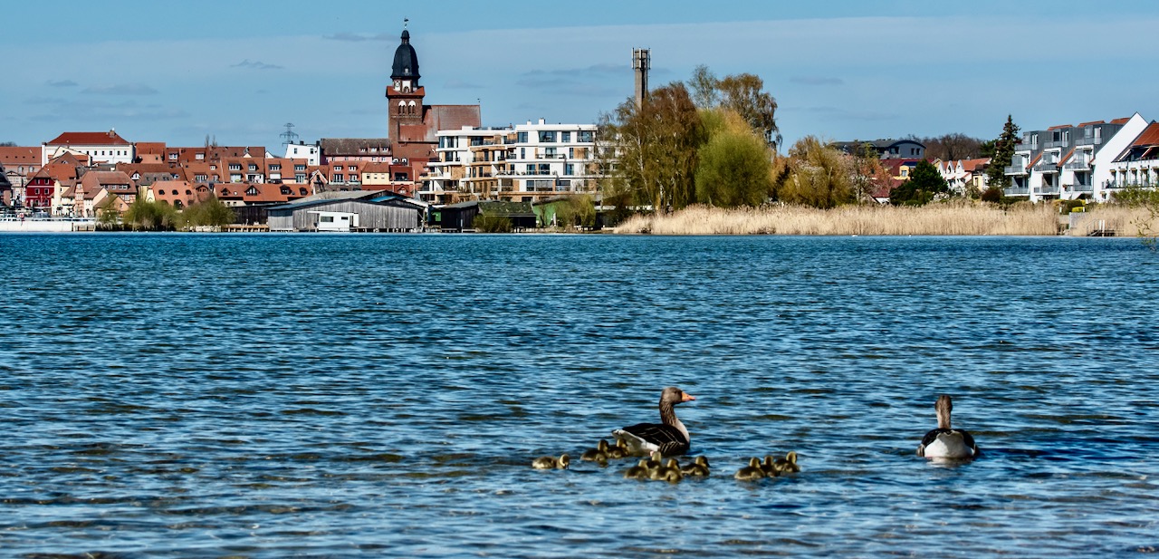 Familie Graugans hat heute das schöne Wetter für einen Ausflug genutzt. Mit dabei die zehn Kleinen, die neugierig ihre Umgebung erkundeten.