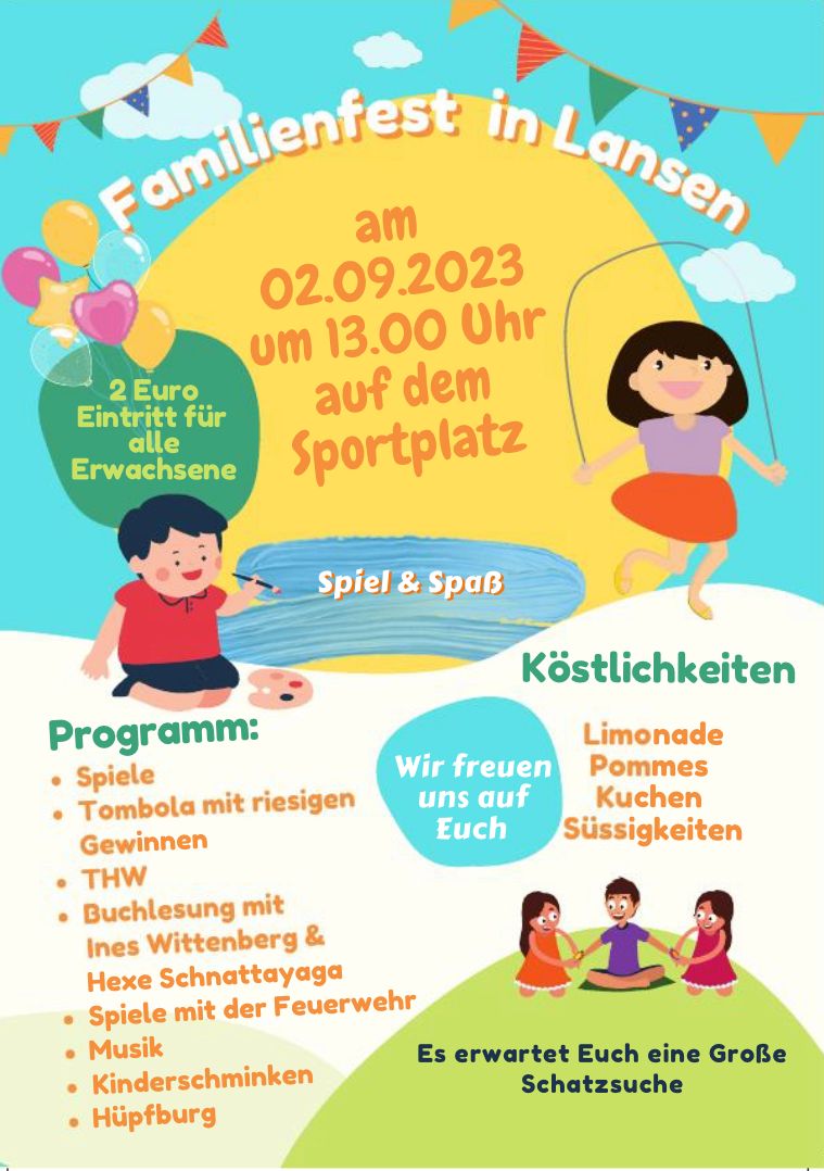 Auch ein in Wasserspielmobil wird für diesen Tag aufgebaut. Außerdem: Kinderschminken, Hüpfburg und Spiele mit der Feuerwehr. Die Versorgung ermöglicht das Restaurant und Café Leddermann zu familienfreundlichen Preisen. Kinder zahlen keinen Eintritt, lediglich die Erwachsenen zahlen einen kleinen Eintritt von 2 Euro.