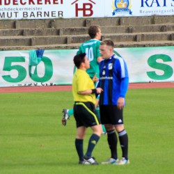 Gleiches galt nicht minder für die spätestens am Strafraum gestellte Warener Offensivreihe. Das Patt war letztlich die erwartete Folge. Das eigentliche Malheuer brach jedoch über Sievershagen gleich im Doppelpack ab der 53./56. Minute herein. Schiedsrichterin Diana Räder-Krause griff nach Foul und falschem Spielerspruch im falschen Augenblick tief in die Tasche: Tiefrot erst, gelbrot danach. Gelb war sowieso außerdem unbestritten mit acht Mal die Farbe des (Spiel)Tages. Mit solchem zahlenmäßigen Übergewicht – zwei Spieler mehr – war eigentlich für Waren 09 der Weg endgültig frei. Es dauerte jedoch bis zur 67. Minute, ehe Guido Timper mit seinem Flachschuss aus 25 Metern das erlösende Tor erzielte. Nach Patzer des Gästetorwarts legte der gerade zuvor eingewechselte Christoph Bergmann auf 09-Goalgetter Tobias Täge ab, der nur noch einzudrücken brauchte (83.), aber gleich noch per Kopf zum 3:0 (88.) nachlegte. Der Schlusstreffer für Sievershagen durch Paul Maletzke (3:1) war dagegen eher unnötig.