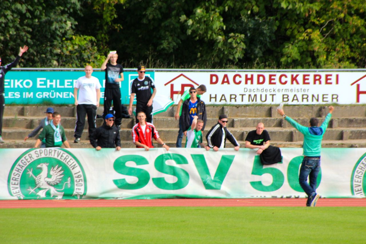 Gleiches galt nicht minder für die spätestens am Strafraum gestellte Warener Offensivreihe. Das Patt war letztlich die erwartete Folge. Das eigentliche Malheuer brach jedoch über Sievershagen gleich im Doppelpack ab der 53./56. Minute herein. Schiedsrichterin Diana Räder-Krause griff nach Foul und falschem Spielerspruch im falschen Augenblick tief in die Tasche: Tiefrot erst, gelbrot danach. Gelb war sowieso außerdem unbestritten mit acht Mal die Farbe des (Spiel)Tages. Mit solchem zahlenmäßigen Übergewicht – zwei Spieler mehr – war eigentlich für Waren 09 der Weg endgültig frei. Es dauerte jedoch bis zur 67. Minute, ehe Guido Timper mit seinem Flachschuss aus 25 Metern das erlösende Tor erzielte. Nach Patzer des Gästetorwarts legte der gerade zuvor eingewechselte Christoph Bergmann auf 09-Goalgetter Tobias Täge ab, der nur noch einzudrücken brauchte (83.), aber gleich noch per Kopf zum 3:0 (88.) nachlegte. Der Schlusstreffer für Sievershagen durch Paul Maletzke (3:1) war dagegen eher unnötig.