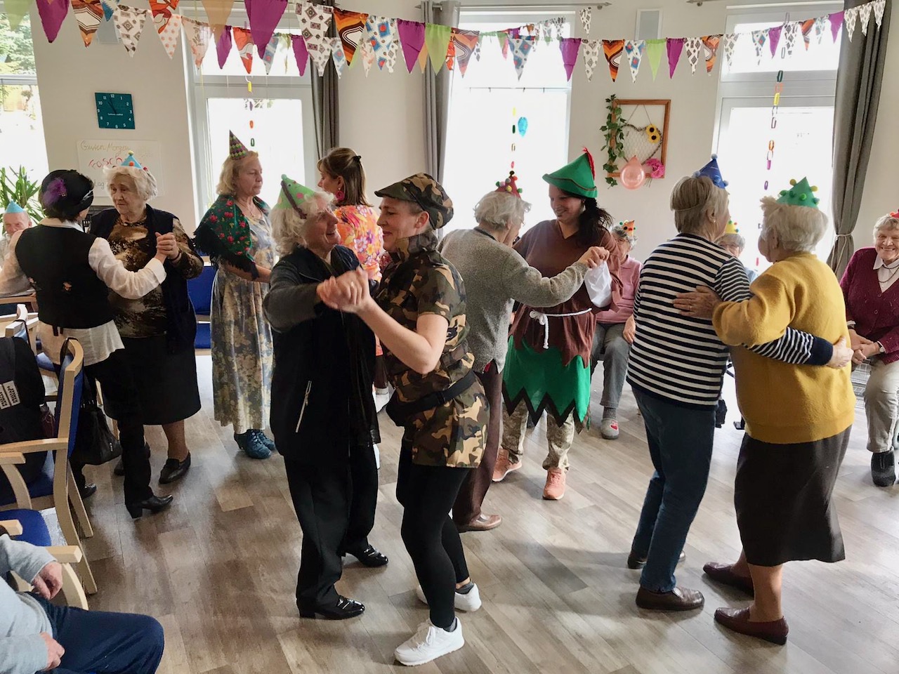 Mit lustigen und selbstgebastelten Hütchen und Masken hatten die Gäste der Tagespflege viel zu lachen. Die verkleideten Betreuerinnen legten sich dann ordentlich ins Zeug und heiterten die Besucher mit lustigen Vorführungen auf. Gute Laune und die Lust an der Bewegung waren Hauptthema des Vormittags.