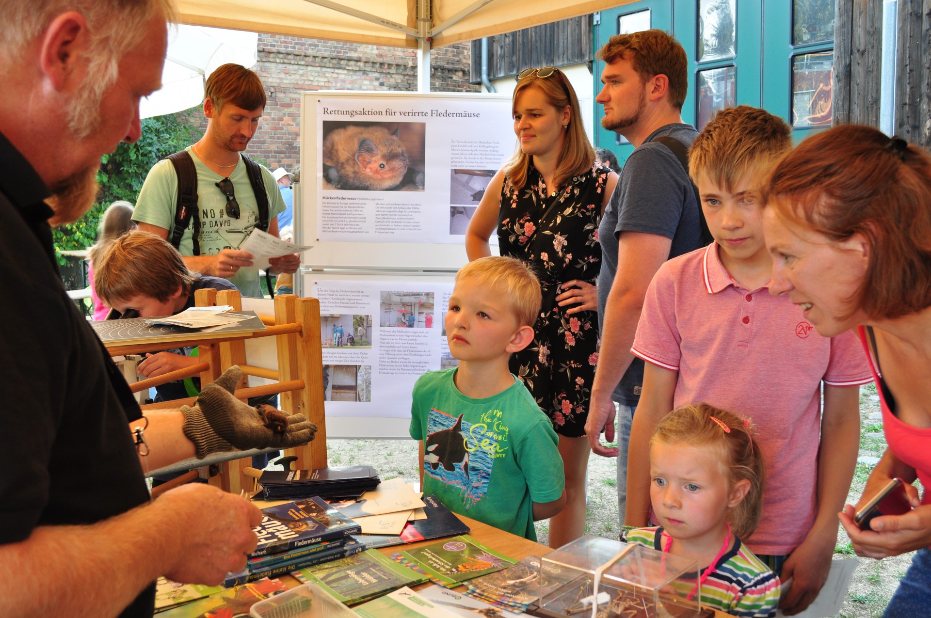 Ab 17 Uhr gibt es an verschiedenen Ständen im Hinterhof rund um das Thema Fledermaus viel zu entdecken. Das dort erlangte Wissen ist hilfreich, um auch die diesjährige Fledermaus-Ralley erfolgreich zu meistern, denn es werden wie jedes Jahr ab 20 Uhr Fledermauspreise an die Teilnehmer verliehen. Ab 20:30 Uhr bekommen die Besucher die Möglichkeit, mit den Nationalpark – Rangern auf Exkursion in das nahe gelegene Fledermausrevier zu gehen und die geflügelten Säuger mit Detektoren aufzuspüren. Beim anschließenden Nachtfalterfang haben sie den vielfältigen Speiseplan der Fledermaus dann live vor Augen. Der Abend klingt mit einem prasselnden Lagerfeuer und leckerem Stockbrot aus.