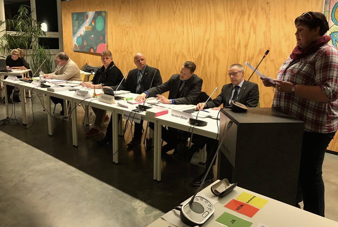 Foto unten: Christiane Scherfig macht in der Bürgerfragestunde der Warener Stadtvertretung auf das Parkplatzproblem aufmerksam.