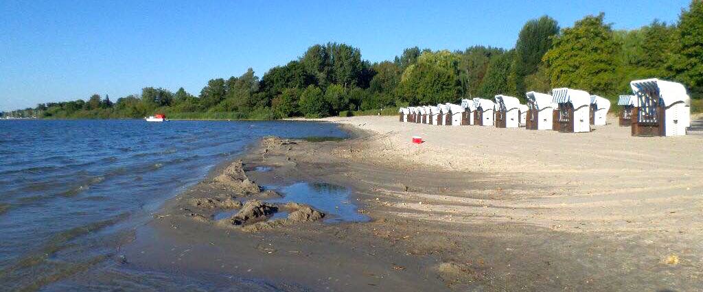 Beispiel Volksbad: An der Kette, die den Nichtschwimmerbereich kennzeichnet, können inzwischen selbst Babys noch stehen. Rund 50 Zentimeter hat die Müritz in den letzten Wochen „verloren“. Bei Temperauren von 25 Grad und mehr ist ein Bad im größten Binnensee auch nicht mehr unbedingt erfrischend.