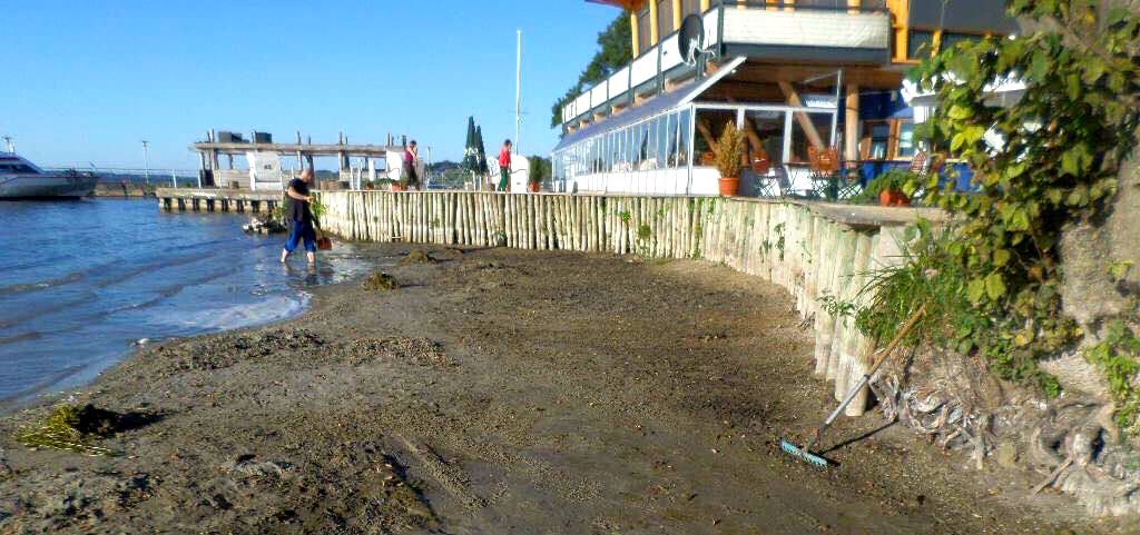 Davon können sich die Strandbesucher derzeit täglich überzeugen. Die Wasserstände sind in den vergangenen Wochen massiv zurückgegangen, viele Wassersportfreunde können ihre Bootsschupen schon nicht mehr nutzen.