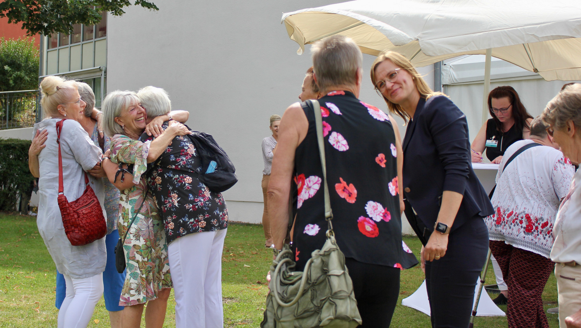 Die Gäste freuten sich gestern sichtlich über das lang ersehnte Wiedersehen mit ihrer geschätzten Amsee-Familie und die kleinen Geschenke der Klinikdirektion. Jeder Gast bekam einen handgefertigten Fächer im Design der Johannesstift Diakonie sowie eine frisch gedruckte Chronik zum Nachlesen der hundertjährigen Klinikgeschichte. Ein weiteres Highlight war das begehbare Lungenmodell mit anschaulichen Darstellungen der gesunden Lunge und deren Erkrankungen.