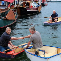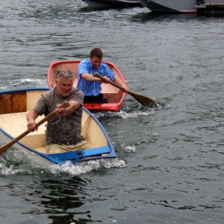 Gewonnen hat das Gaudi-Rennen der ehemalige Chef der Warener Wasserschutzpolizei Uwe Tredup vor dem Landtagsabgeordneten Jürgen Seidel und Sail-Organisator „Ecki“ Steder. Auf Platz vier landete der stellvertretende Wehrleiter Reimond Kamrath vor seinem Chef, Bürgermeister Norbert Möller.
