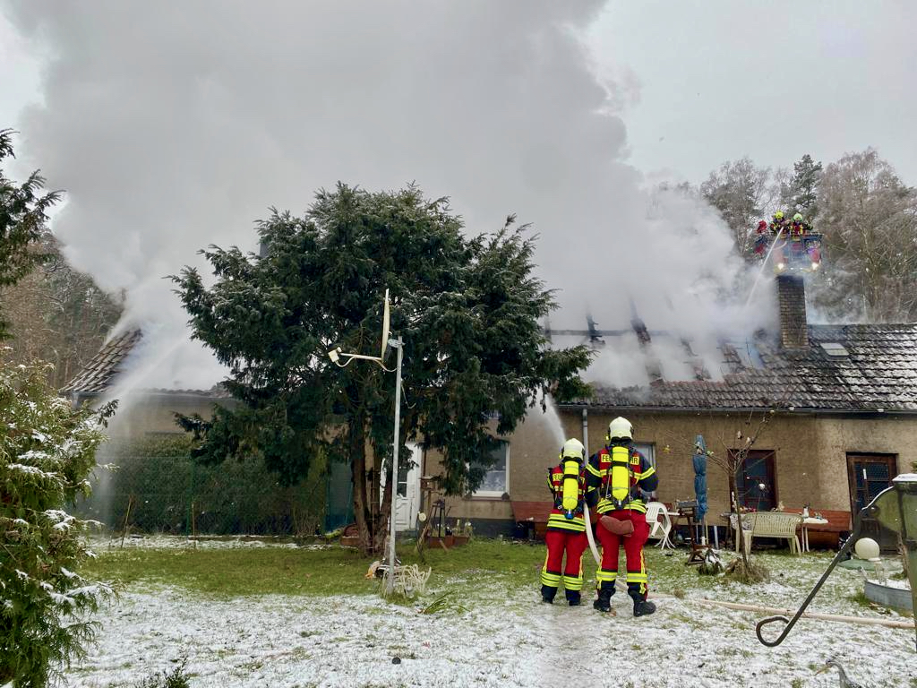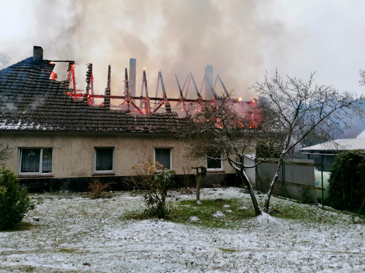 Als die ersten Einsatzkräfte um kurz vor 9 Uhr in Satow-Hütte eintrafen, brannte der Dachstuhl des Doppelhauses bereits in gesamter Ausdehnung.