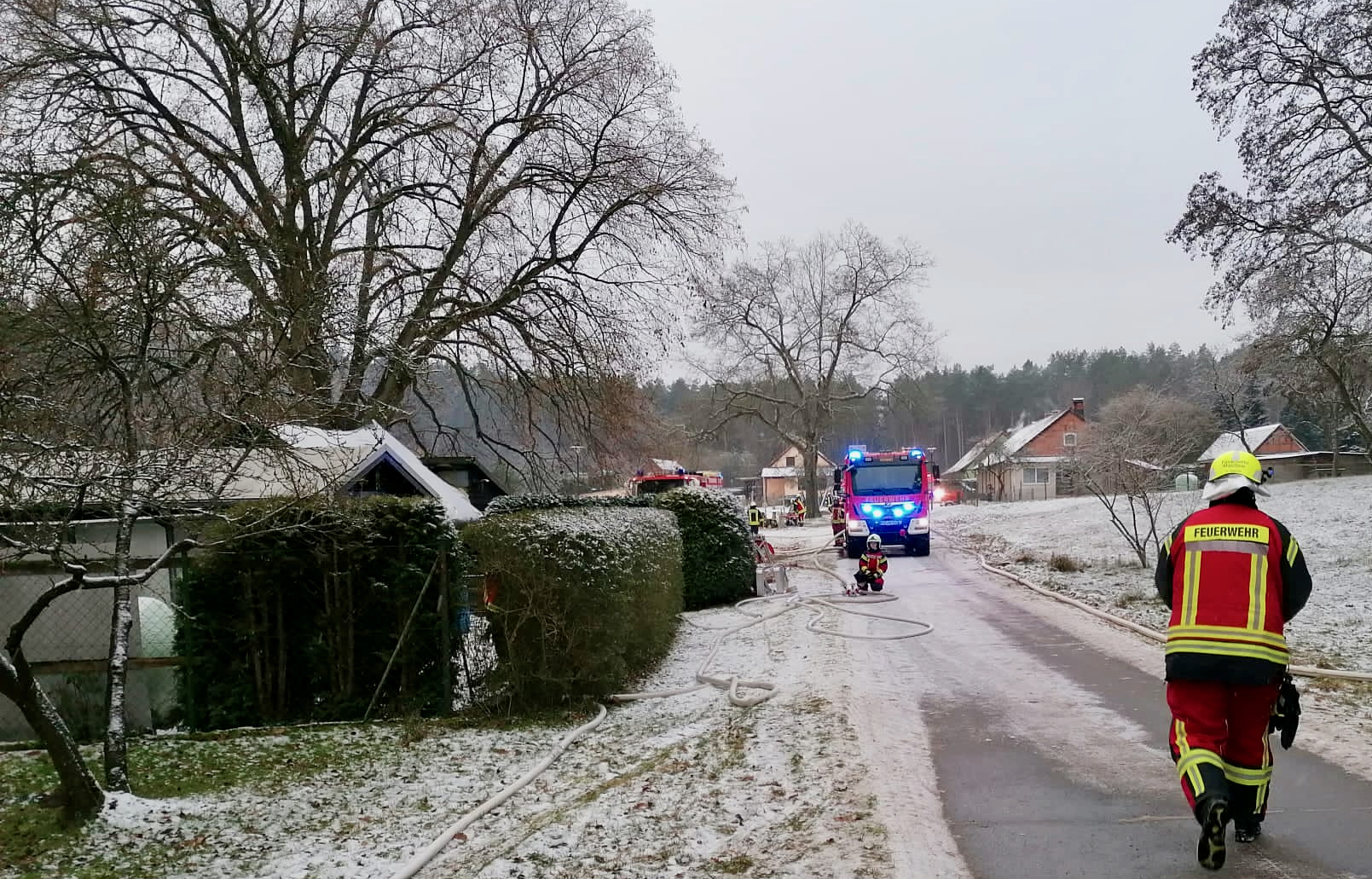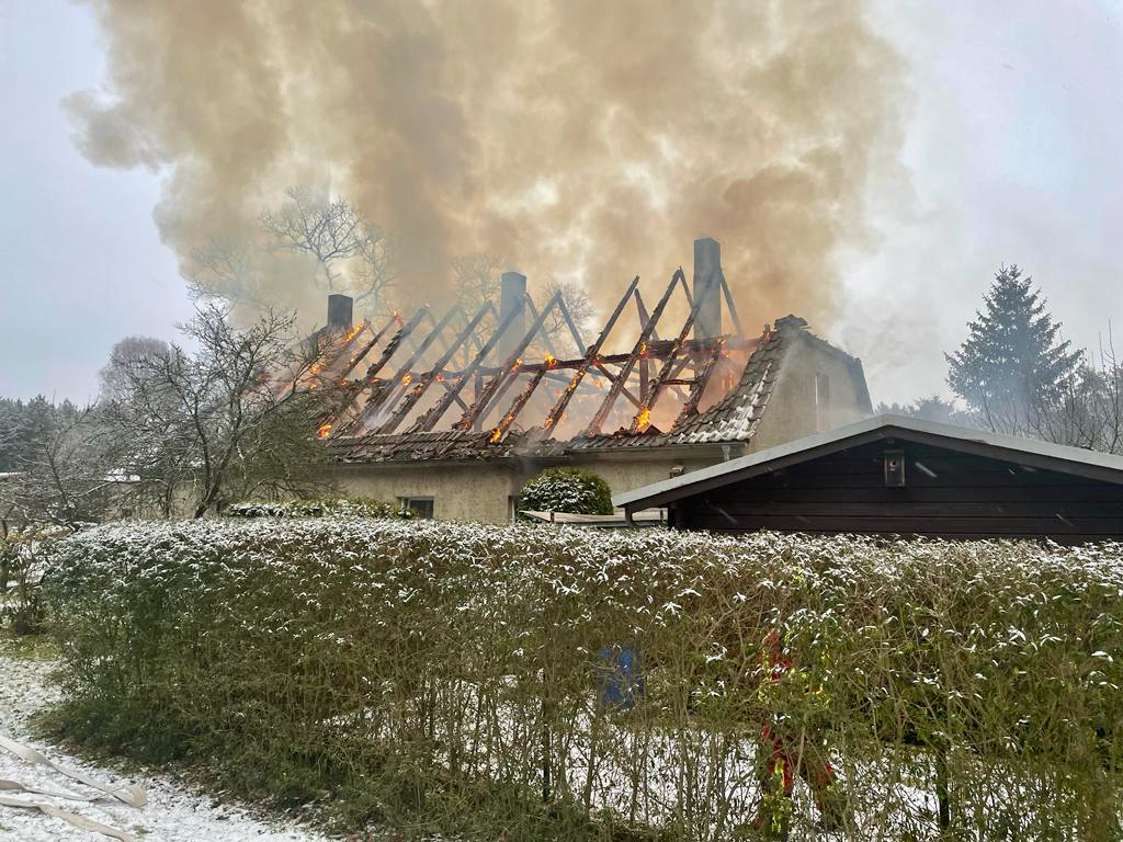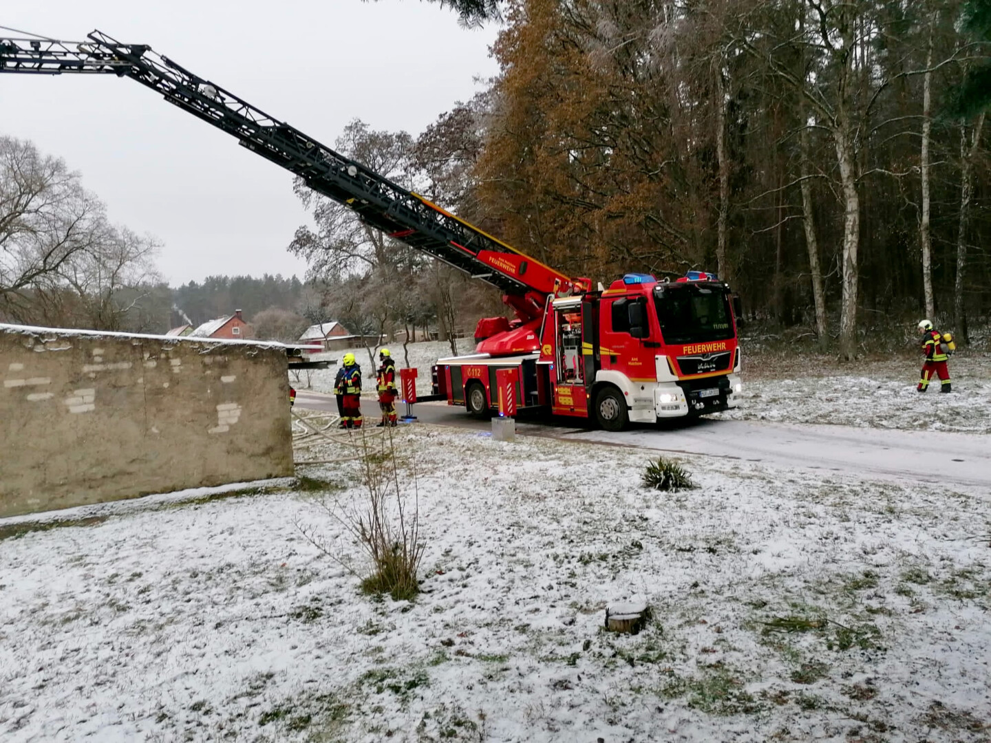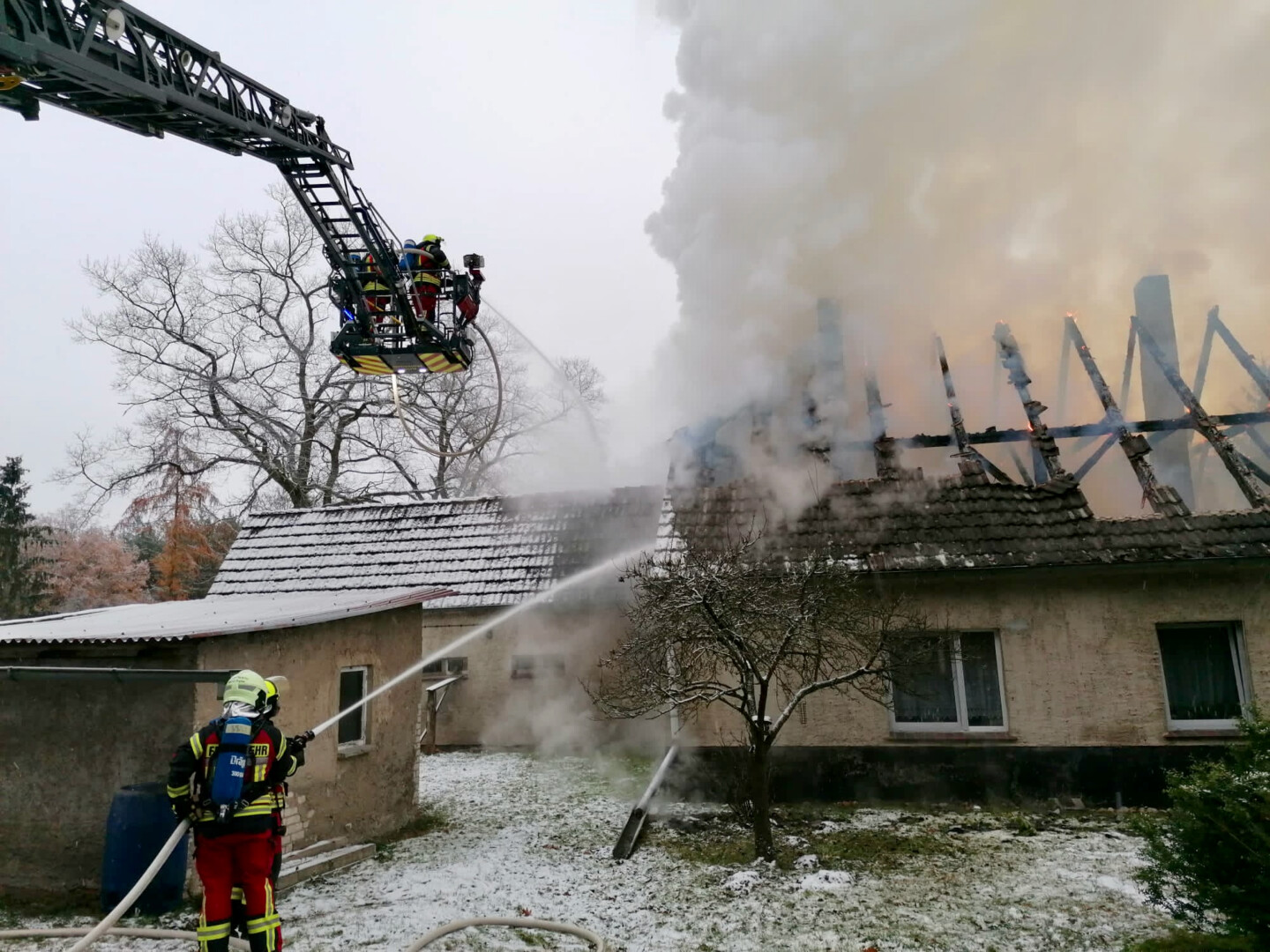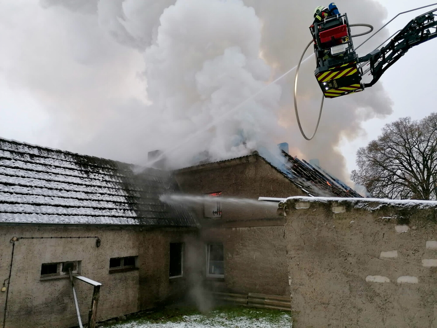 Für die zwei Bewohner eines Doppelhauses in Satow-Hütte bei Malchow begann der dritte Advent mit einer Katastrophe. Nur wenige Tage vor Weihnachten verloren sie bei einem verheerenden Brand ihr gesamtes Hab und Gut. Gegen 8.35 Uhr wurden die Feuerwehren rund um Malchow zu einem Dachstuhlbrand alarmiert. Schon die Anfahrt der rund 70 Einsatzkräfte gestaltete sich aufgrund der Witterungsverhältnisse äußerst schwierig. „Wir hatten mit tief winterlichen Straßenverhältnissen zu kämpfen. Dadurch verzögerte sich unsere Anfahrt zum Einsatzort“, berichtete Amtswehrführer Thomas Pieszek.