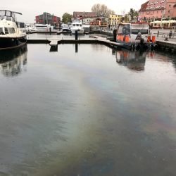 Wieder einmal ein großer Ölteppich im Warener Hafen und der scheint – auch wieder einmal – aus dem Regenauslauf zu kommen.