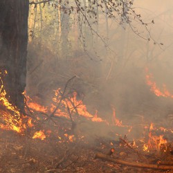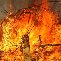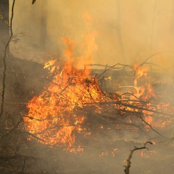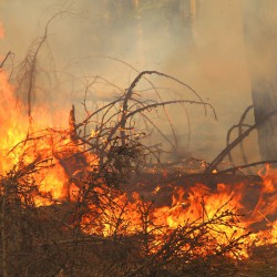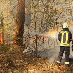 Die Flammen finden in dem trockenen Gehölz genug Nahrung und schlagen dutzende Meter hoch in den Himmel. Rund 100 Feuerwehrleute von mehreren Löschzügen versuchen den Großbrand zurzeit in den Griff zu bekommen.