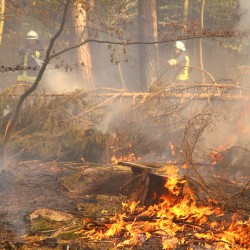 Schätzungsweise fünf bis zehn Hektar Waldfläche sind bislang vernichtet worden. Was der Auslöser für den ersten großen Waldbrand dieses Jahres ist, ist noch unklar.