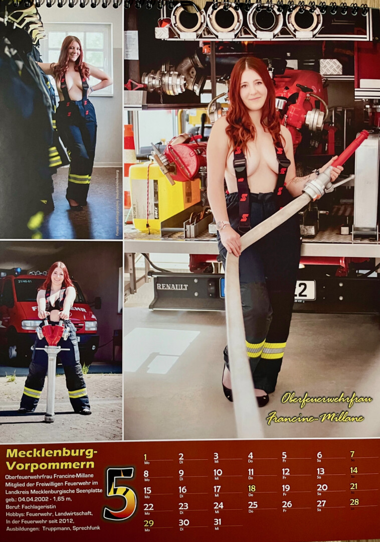 Einen Fotografen konnte sie selbst aussuchen und fand einen in Neubrandenburg, dann ging das Shooting auch schon los. „Natürlich in Einsatzkleidung und am sowie im Gerätehaus. Das hat wirklich viel Spaß gemacht“, so Francine. Riesengroß war ihre Freude, als die Herausgeber ihr die Nachricht schickten, dass sie im Kalender 2023 dabei ist. Eine Auszeichnung, denn bei den Herstellern gehen Jahr für Jahr hunderte Bewerbungen ein, aber es gibt ja nur zwölf Kalenderblätter.