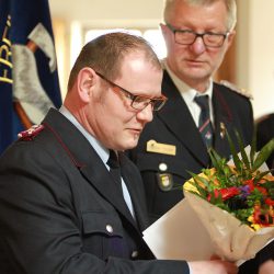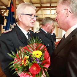 „Wir müssen uns aber auch auf die Grundsätze beschränken. Die Freiwilligen Feuerwehren übernehmen mittlerweile Aufgaben, die nicht zu den eigentlichen Aufgaben der Feuerwehr gehört“, sagte Hannes Möller, Landesbrandmeister im Land. Uns nützt die teuerste und beste Technik nichts, wenn wir niemanden haben der sie bedient“, ergänzte Möller und sprach damit die unverzichtbare Nachwuchsarbeit an.
