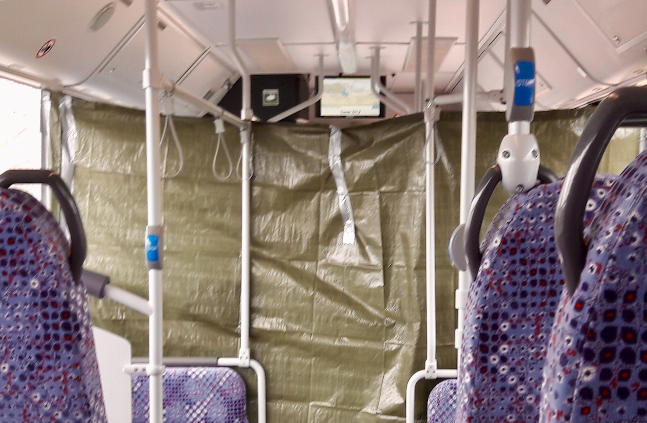 So sieht es derzeit im dat-Bus zwischen Röbel, Waren und Neubrandenburg. Die Fahrgäste zeigen für diesen Schutz der Busfahrer viel Verständnis. „Ich möchte mich bei allen Busfahrern bedanken, die täglich unter Einsatz ihres Lebens potenziell verkeimte Pendler wie mich zur Arbeit transportieren.