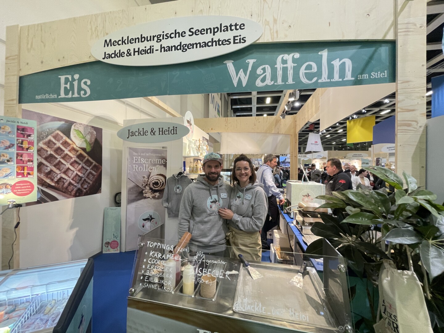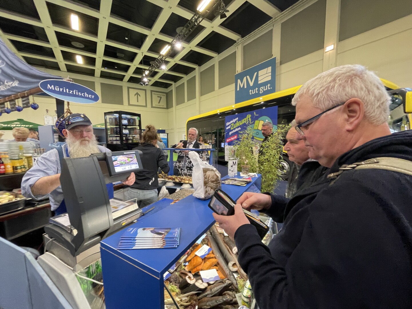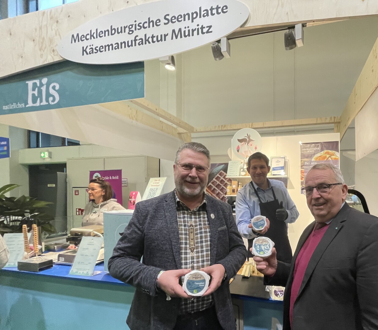 Grüne Woche in Berlin, Tag eins. Endlich wieder und Mecklenburg-Vorpommern hat gleich eine eigene Halle. Da schauen auch die Bayern gerne mal vorbei. Mit dabei auch zwölf Aussteller aus der Mecklenburgischen Seenplatte, wie die Müritzfischer, das Schliemann-Museum mit leckeren Aufstrichen, die Hanf Farm GmbH, die Käsemanufaktur Müritz aus Bollewick und die Müritz-Saga.