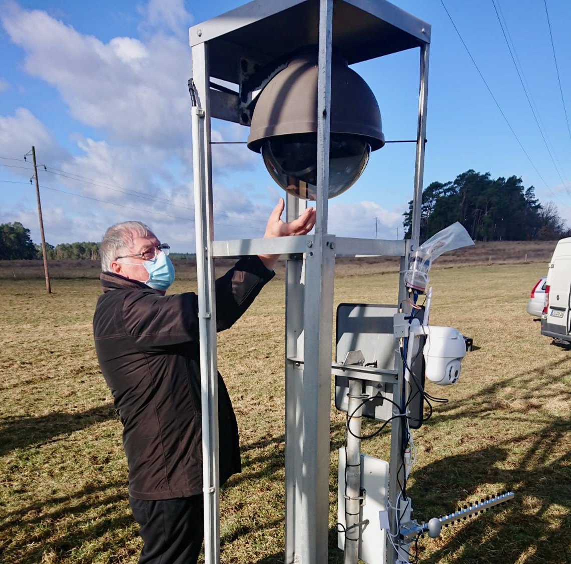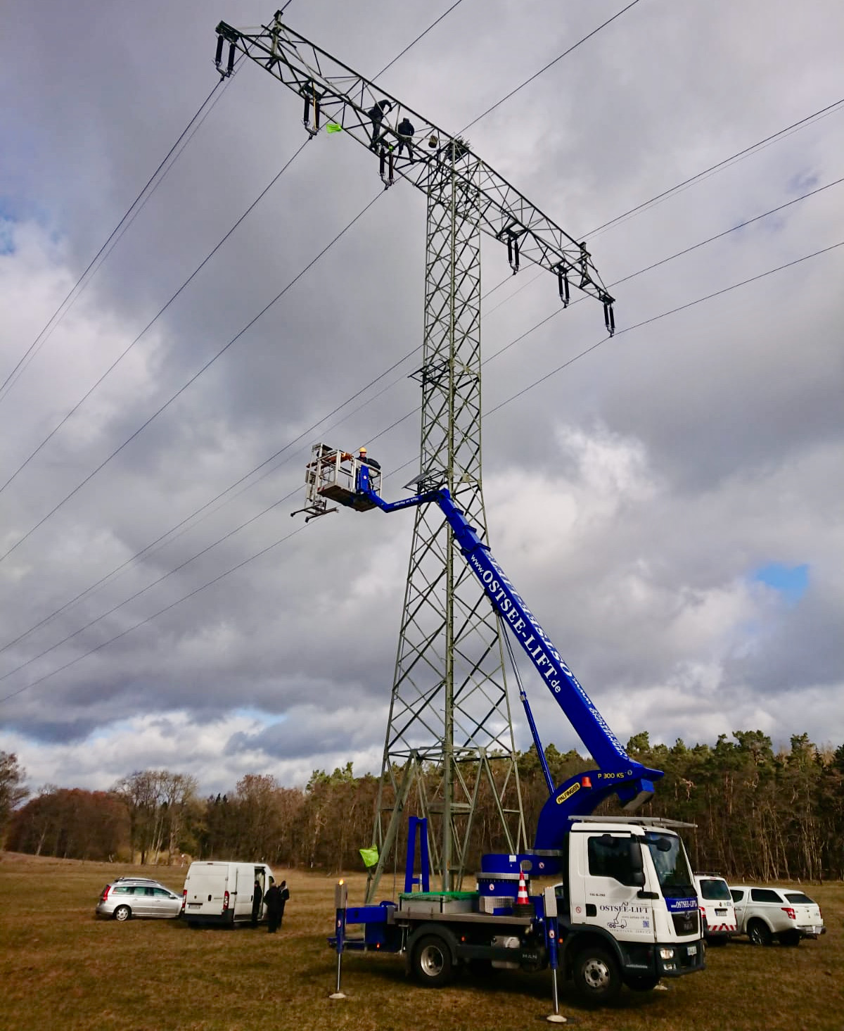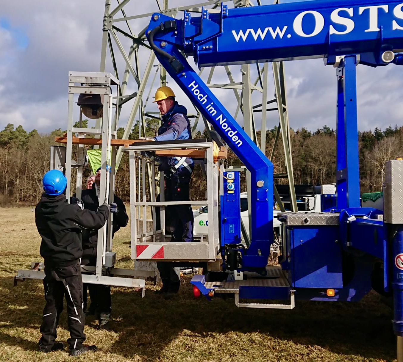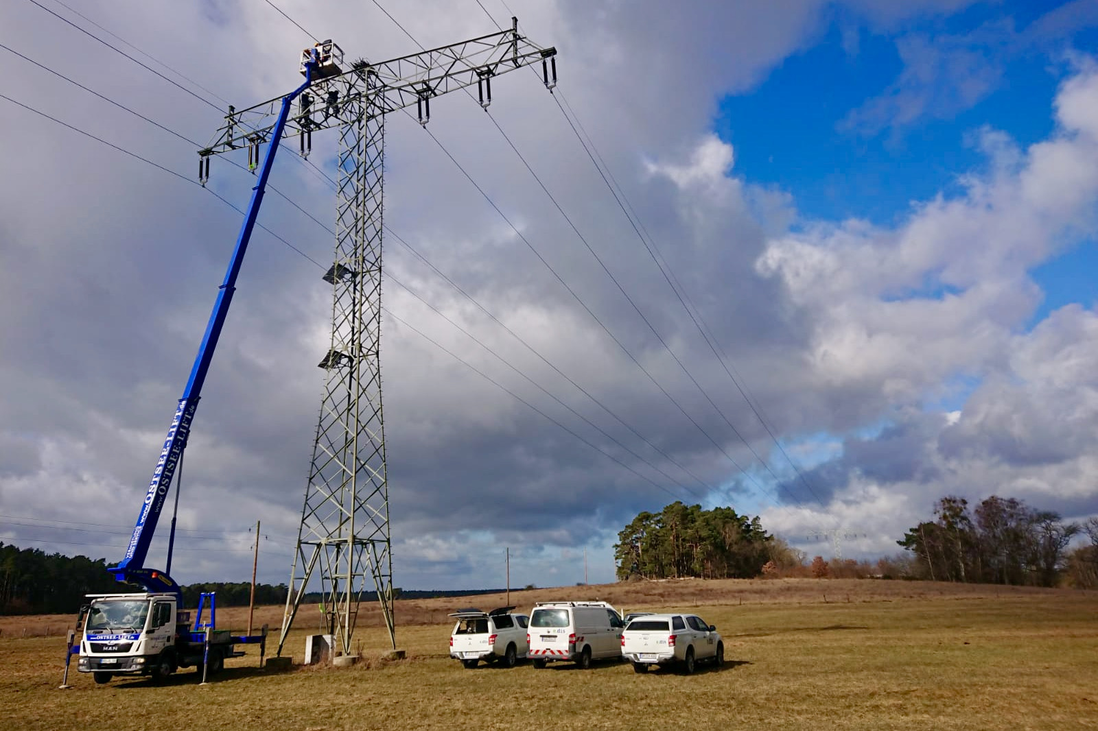 Es kann wieder losgehen bei Federow: Techniker aus Rostock und vom Energiedienstleister Edis haben die Kamera am Fischadlernest installiert, die die Bilder zum Nationalpark-Service am Ortseingang liefert. Bei starken Böen hievte ein Hubsteiger die Monteure und die Traverse mit der 360-Grad-Kamera gestern nach oben. Die 110-KV-Leitung war extra abgeschaltet worden.