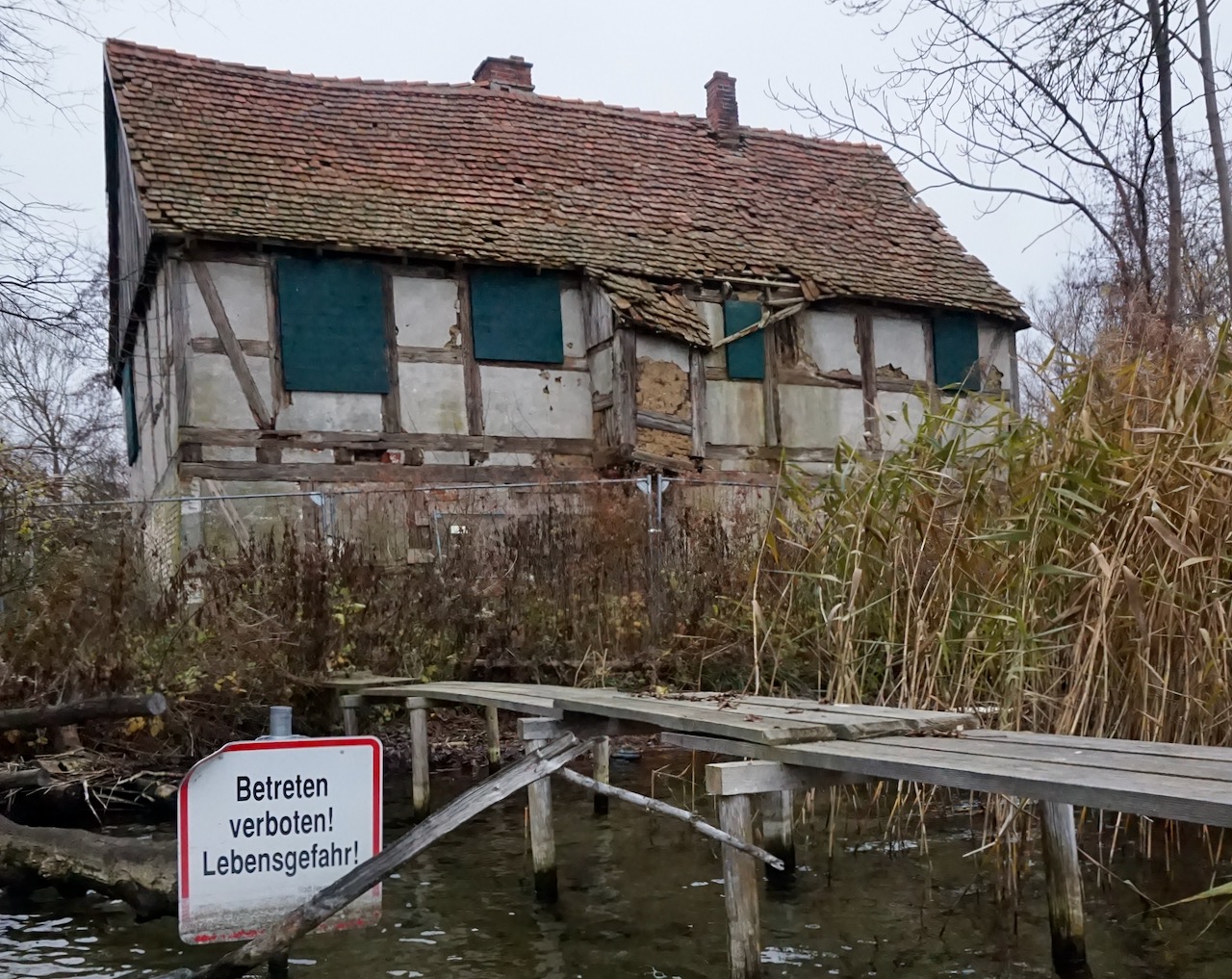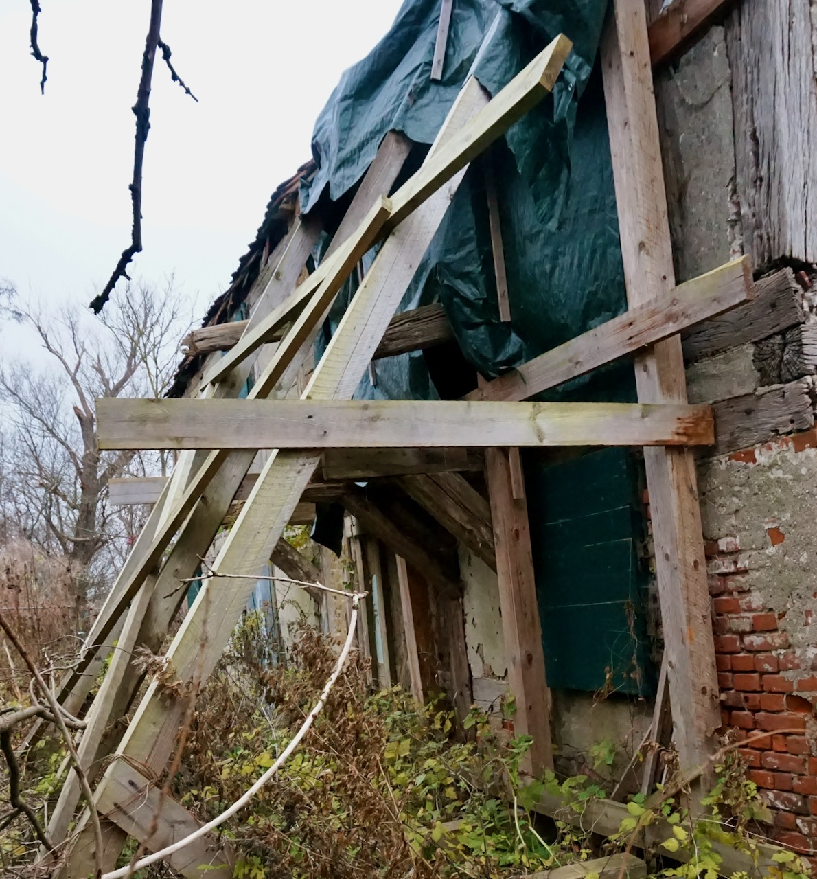 Das seit Jahrzehnten ungenutzte Fischerhaus gilt durch die abgeschiedene Lage, den langen Leerstand und den voranschreitenden Verfall als akut gefährdet. Um die Lasten vom Mauerwerk zu nehmen, werden zunächst die Dachziegel entfernt. Mit einem leichteren Blechdach wird das Haus künftig geschützt. Außerdem werden die Wände abgestützt und damit stabilisiert.