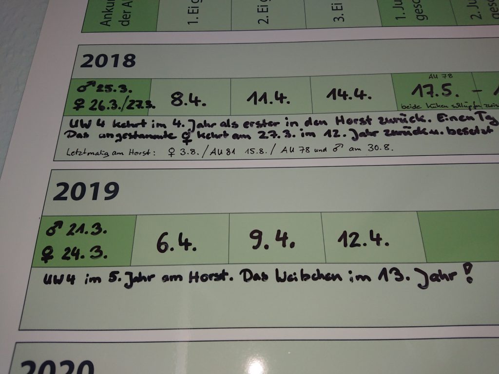 Nur vom alten Männchen, das 2017 noch seinen Nachfolger vertrieben und dessen Eier aus dem Nest befördert hatte, fehlt weiter jede Spur. Das inzwischen 24 Jahre alte Tier sei zwar beringt, aber es sei nicht sicher, ob man davon noch einmal etwas hört oder sieht. Wenn Fischadler tot sind, ist es sehr selten, dass die Vogelwarten noch einmal einen Ring bekommen. Der „alte Federower Adler“ hatte mehr als 15 Jahre für Nachwuchs und viel Interesse bei den Nationalparkbesuchern gesorgt. „Senioren“ unter den Fischadlern werden maximal 25 bis 30 Jahre alt.