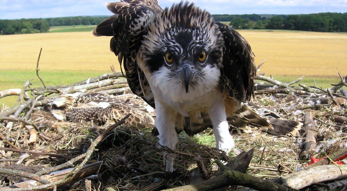 Im Vorjahr hatte das Adlerpärchen ebenfalls drei Eier, aus denen aber nur zwei Jungvögel schlüpften. Ungeachtet der Trockenheit wuchsen beide heran, wurden beringt und flogen im Spätsommer weg. Die Jungvögel sind noch nicht wieder aufgetaucht. Das sei nicht üblich, denn sie würden erst mit vier bis fünf Jahre geschlechtsreif, sagte die Sprecherin. Dann komme vermutlich das männliche Tier wieder in die Nähe des Parks und suche sich einen Brutplatz, weibliche Fischadler flögen weiter, um neuen Reviere zu finden.