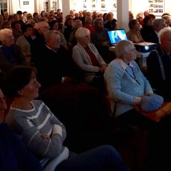 Historische und aktuelle Fotos aus Waren, sowie die humorvolle und fundierte Vortragsweise nahmen die Zuhörer mit auf eine Reise in die Vergangenheit an verschiedene Plätze in Brandenburg und Mecklenburg.