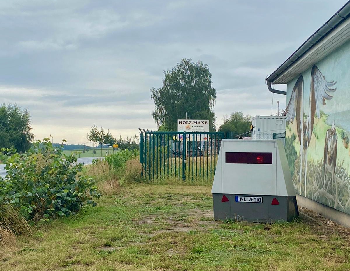 Der „überaus beliebte“ Blitzeranhänger des Landkreises ist wieder im Einsatz. Dieses Mal kurz vor dem Ortsausgang Röbel in Richtung Dambeck. Wie es ja immer wieder vom Kreis heißt, kommt der Anhänger zumeist an Unfallschwerpunkten zum Einsatz