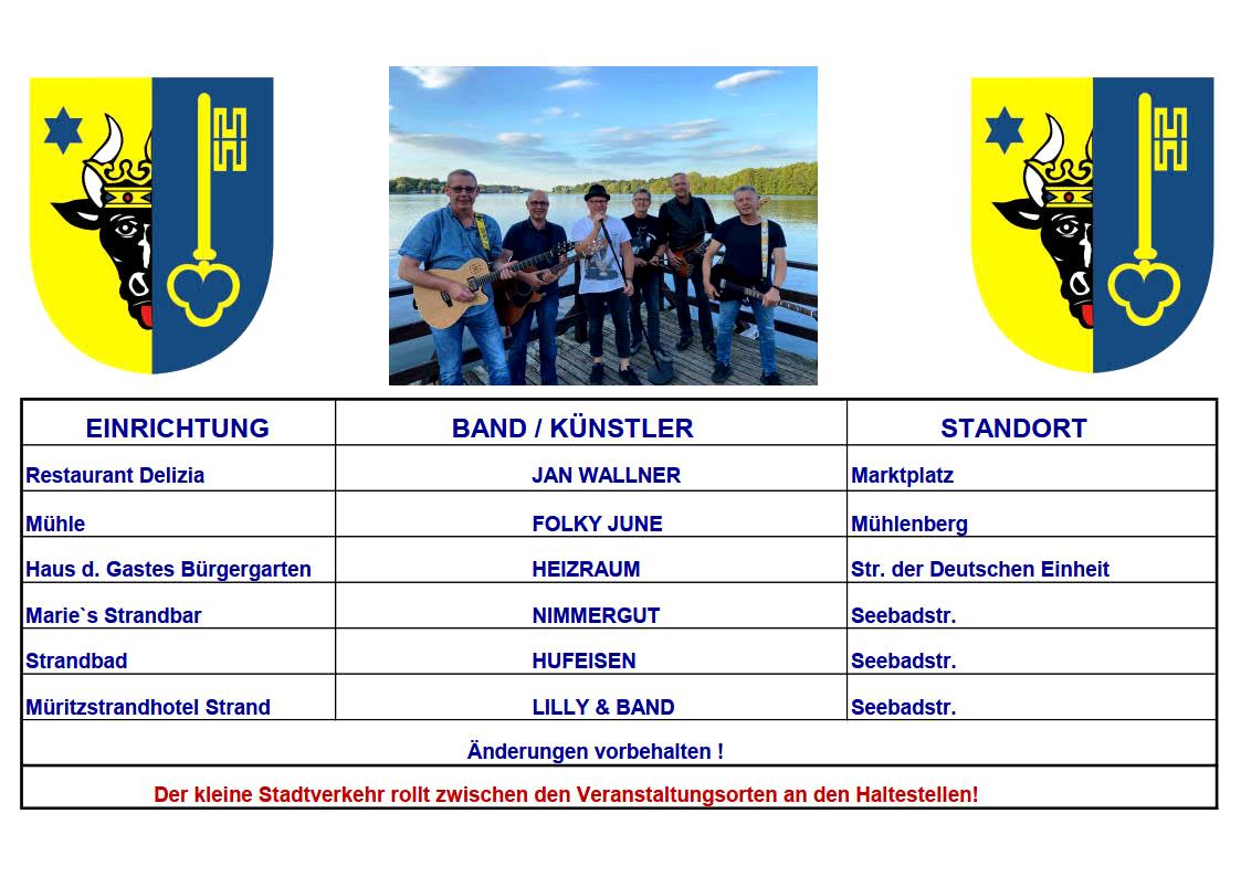 Einfach folgende Frage beantworten und bis morgen, 1. September, 20 Uhr, an die Mailadresse wirsindmueritzer@t-online.de schicken: Wie heißt die auf dem unten stehenden Plakat abgebildete Band, die ebenfalls wieder mit von der Partie ist?