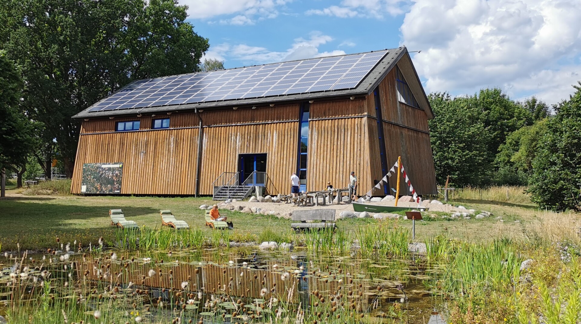 Bild: Das Naturparkzentrum Karower Meiler: Auch das Außengelände mit Teich und Wasserspielplatz lädt zum Verweilen ein.