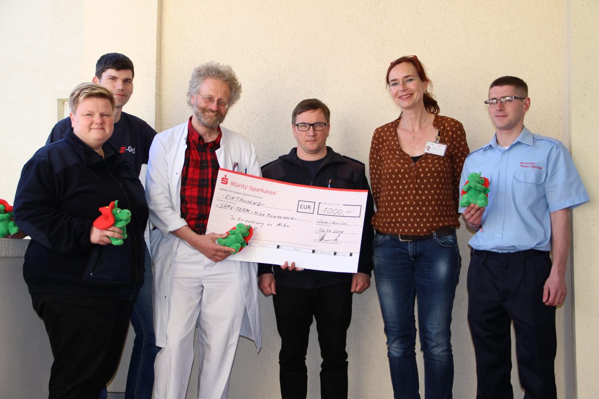 Für die Kameraden war es ein Kraftakt, für die Zuschauer ein Spektakel und für schwerkranke Kinder ist es eine Hilfe: Mit einer großzügigen Spende über 1000 Euro hat die Freiwillige Feuerwehr Waren das SAPV-Team „Mike Möwenherz“ an der Kinder- und Jugendklinik der Universitätsmedizin Rostock bedacht. Die Spende wurde gestern übergeben.
