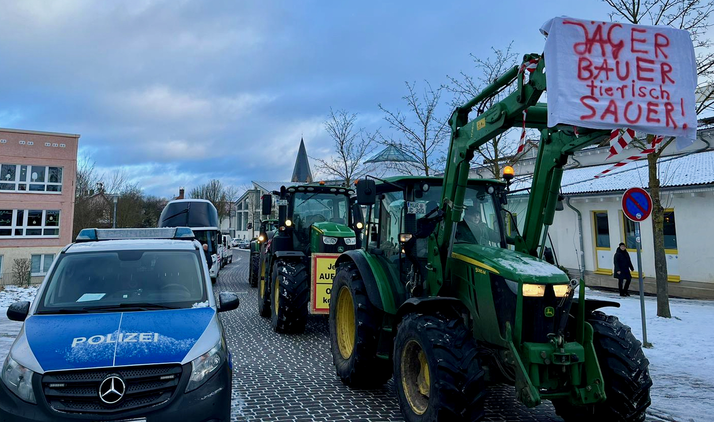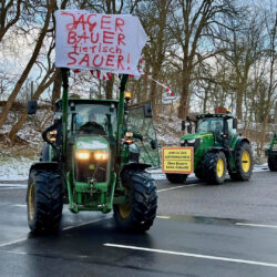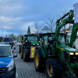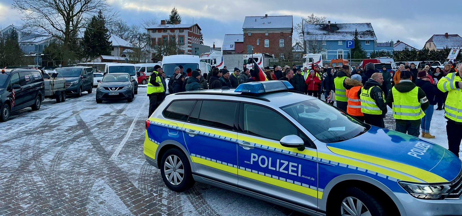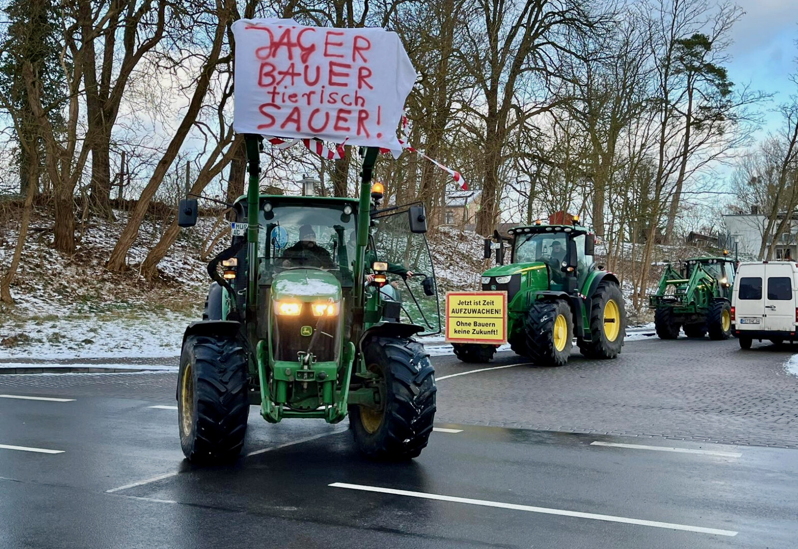 Protestaktion heute Vormittag in und durch Röbel. Rund 50 Fußgänger und etwa 80 Fahrzeuge wurden bei dem friedlichen Protest gegen die aktuelle Bundespolitik gezählt. Mit dabei Landwirte, Handwerker, Unternehmer, Pflegedienste und Privatpersonen.
