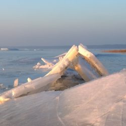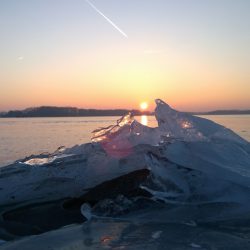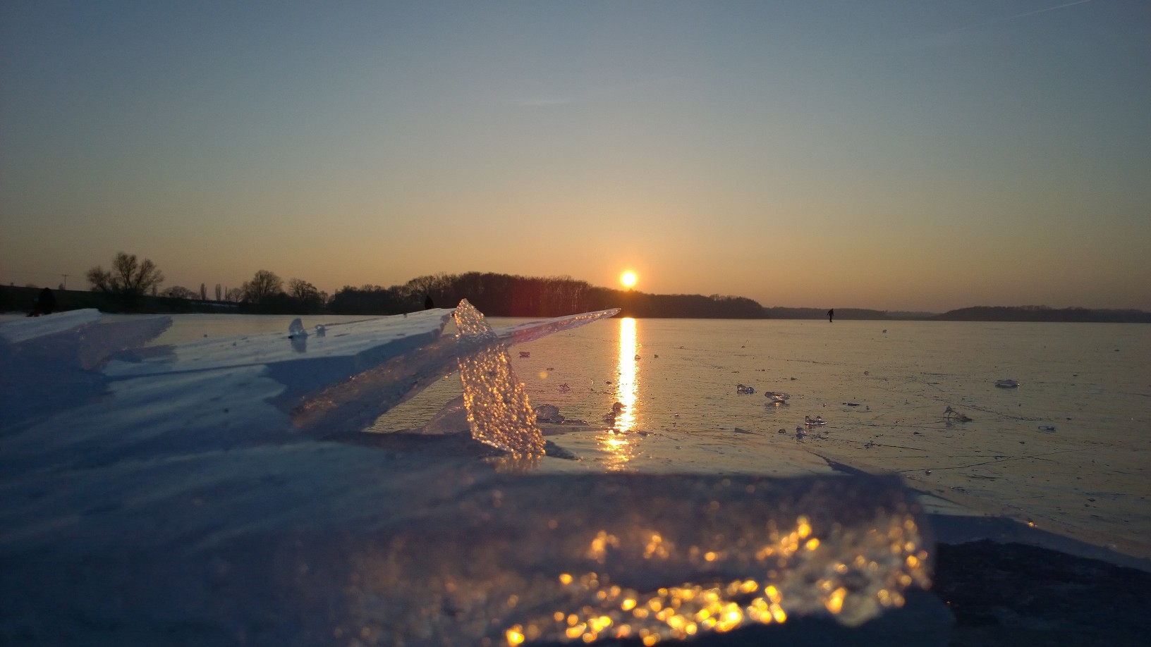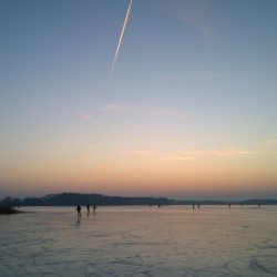 Schlittschuhlaufen auf dem Kölpinsee bis zum Dunkelwerden. Aber vorsichtig, es gibt Hindernisse.