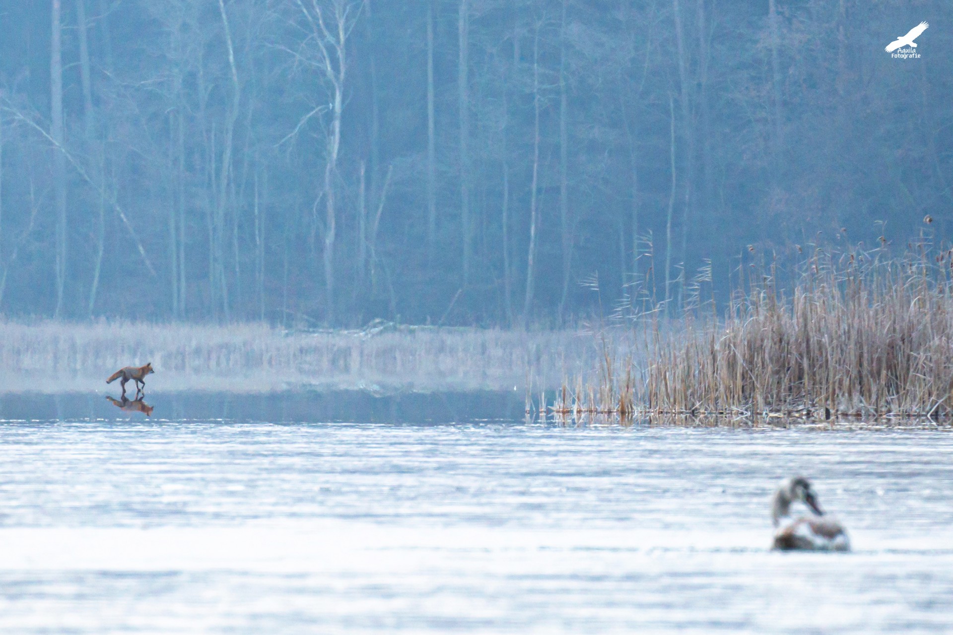 Da ist aber einer mutig auf dem dünnen Müritz-Eis unterwegs.