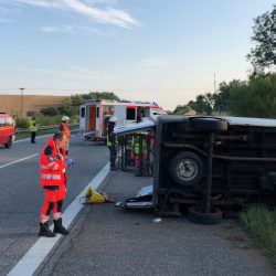 Wieder ein schwerer Unfall auf der A19: In Höhe der Anschlussstelle Krakow am See platzte bei einem Kleinbus ein Reifen, der 37 Jahre alte Fahrer verlor die Kontrolle über sein Fahrzeug. Daraufhin überschlug es sich mehrfach und blieb abseits der Fahrbahn auf der Seite liegen. Fünf Menschen erlitten Verletzungen, einer von ihnen schwere. Die A19 war