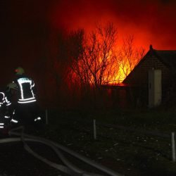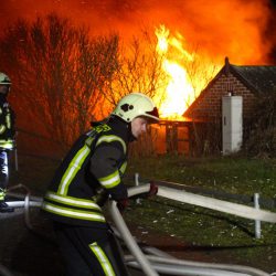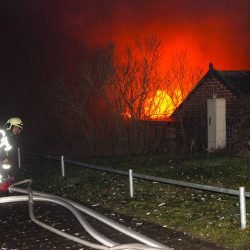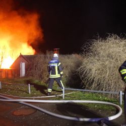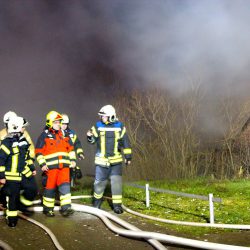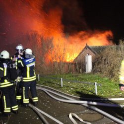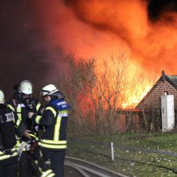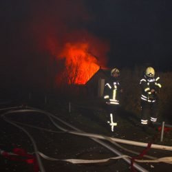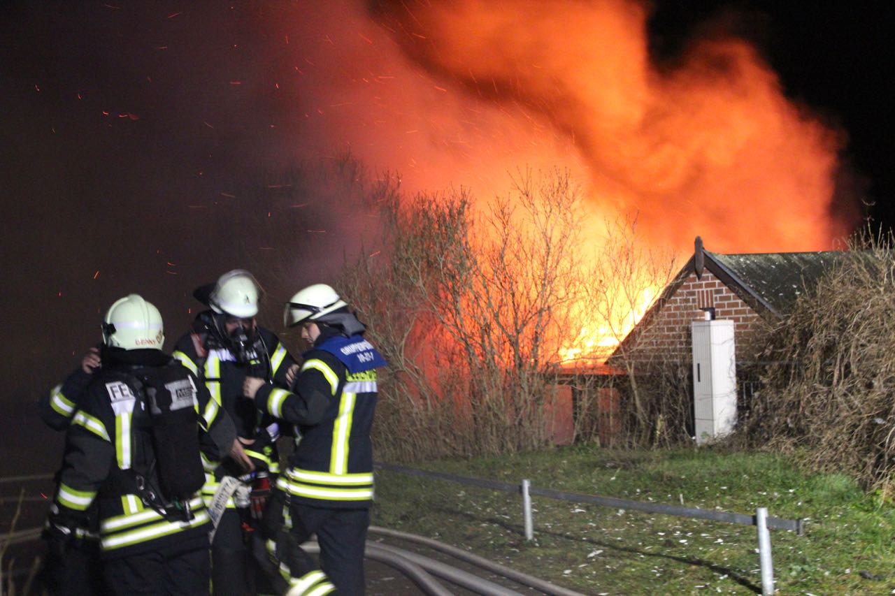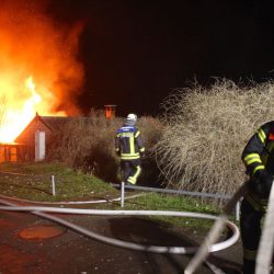 Als die Kameraden eintrafen, stand das Häuschen bereits in Vollbrand, meterhohe Flammen schlugen in den Himmel.